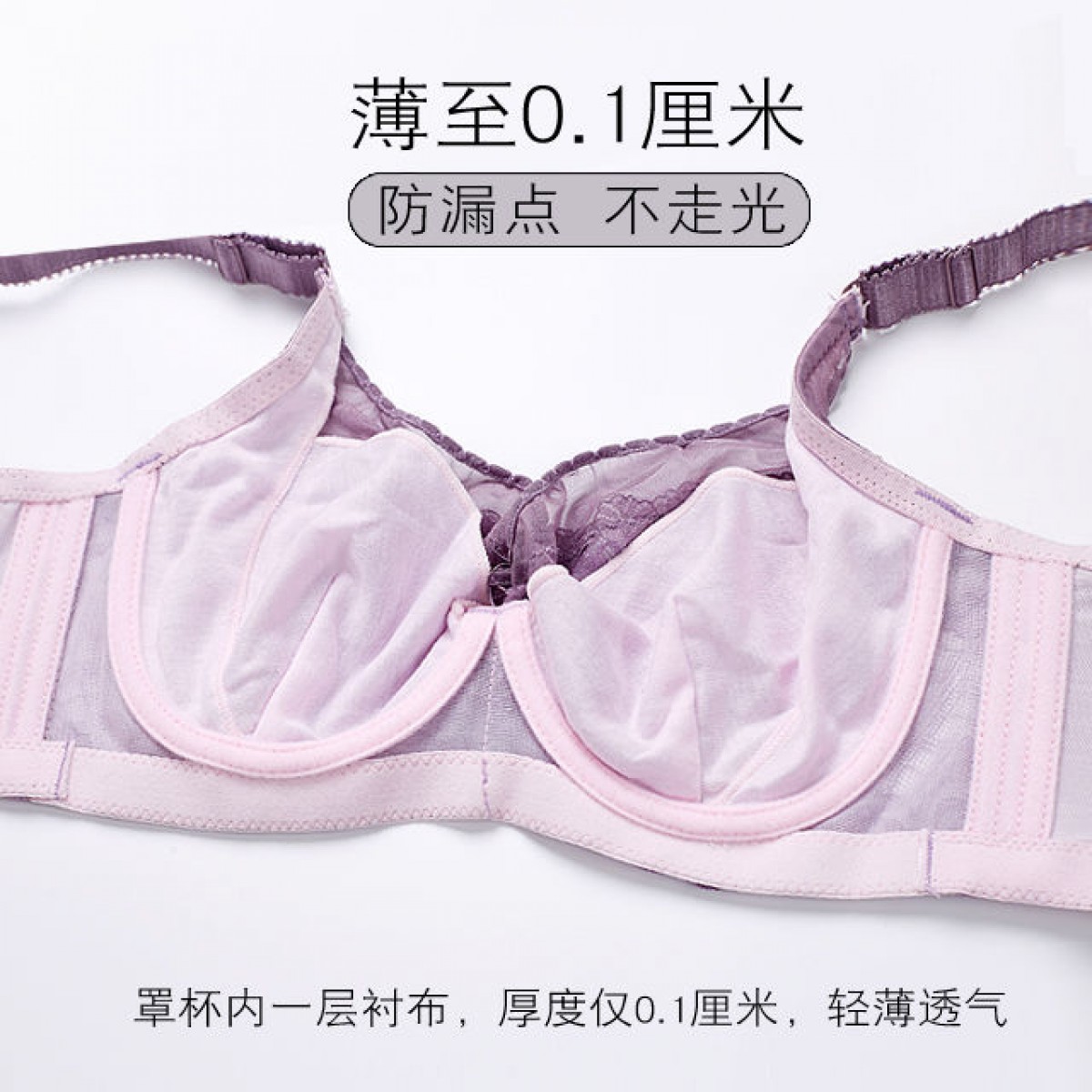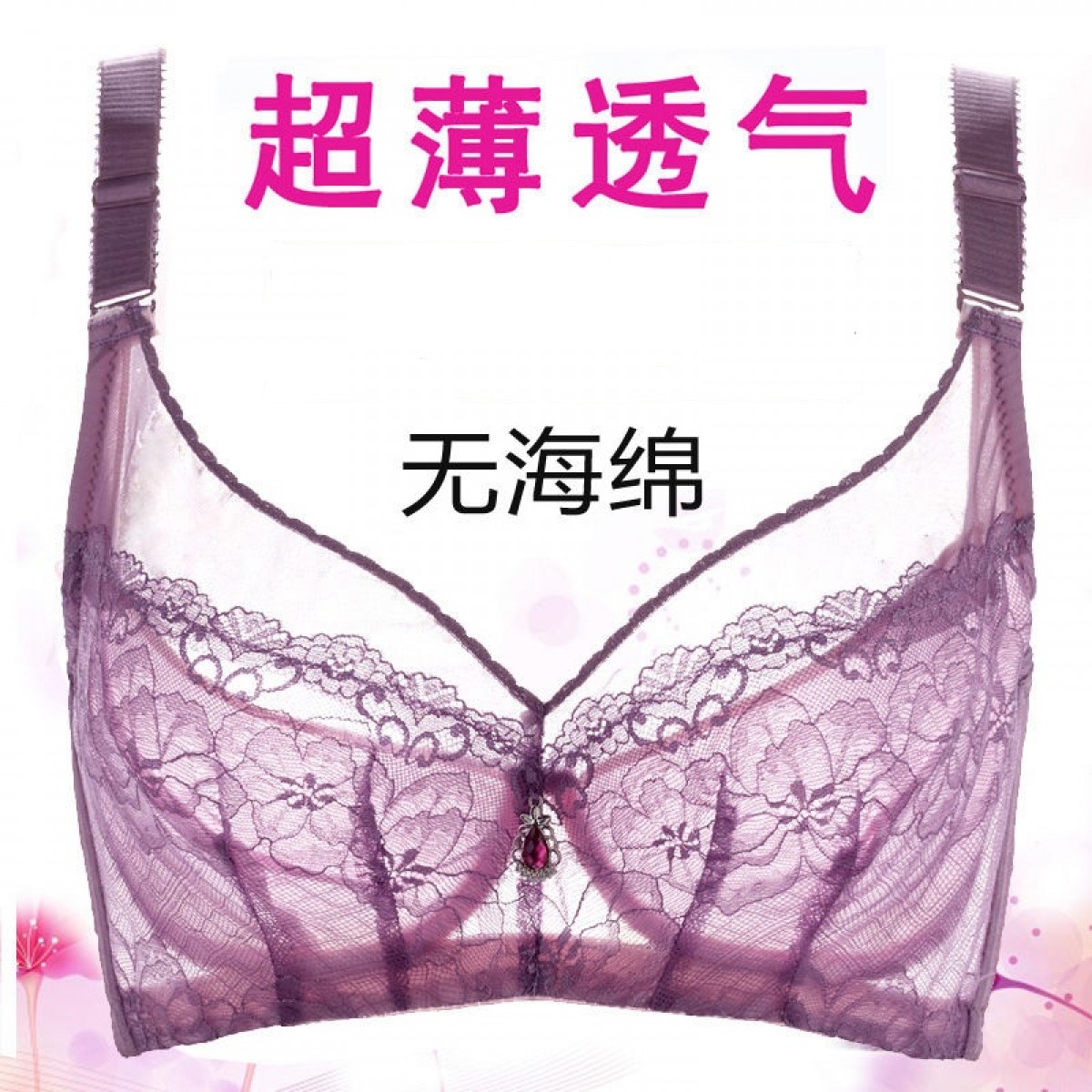 無鋼圈超薄款文胸聚攏大碼胸罩蕾絲內(nèi)衣女士套裝性感大胸顯小夏季
