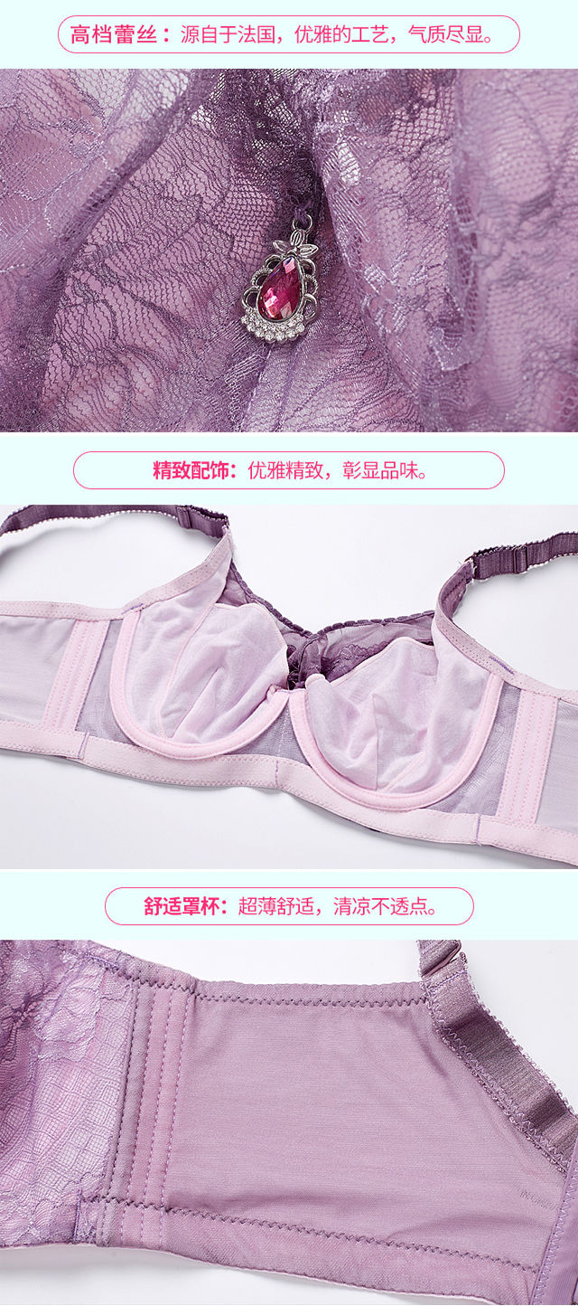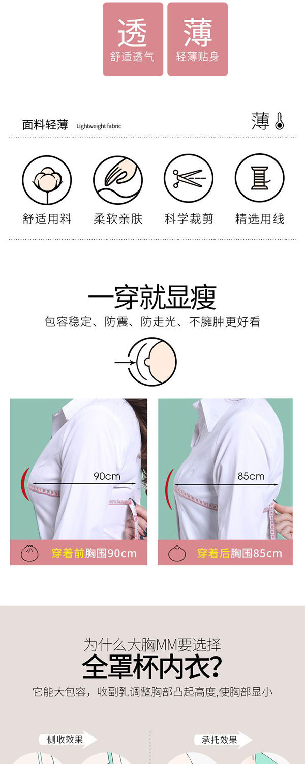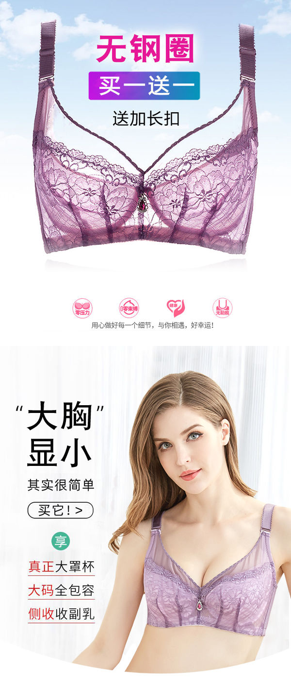 商品名稱:無鋼圈超薄款文胸聚攏大碼胸罩蕾絲內(nèi)衣女士套裝性感大胸顯小夏季
