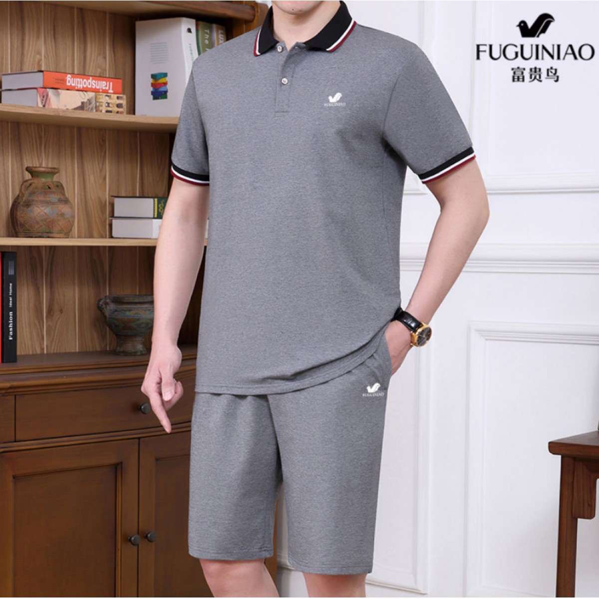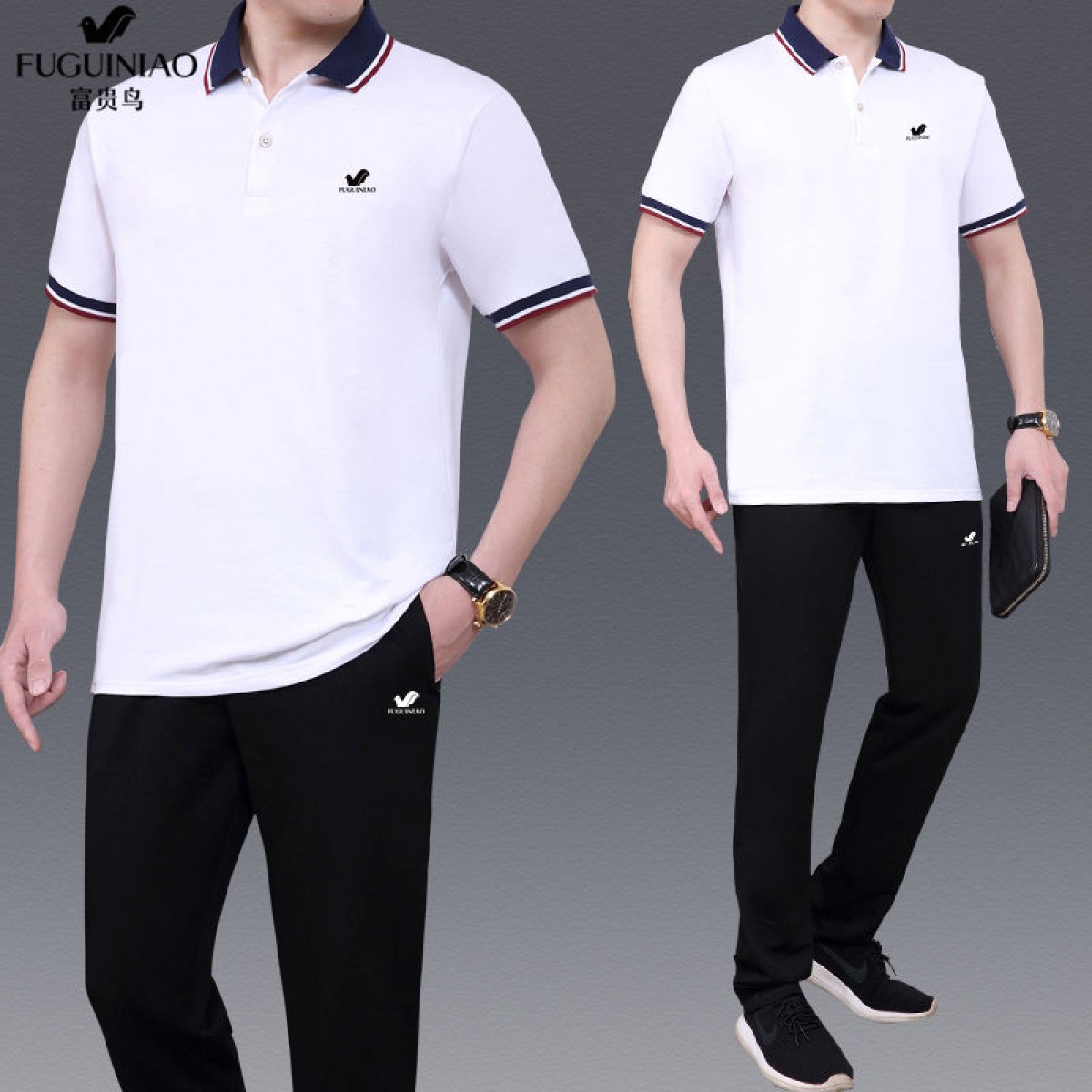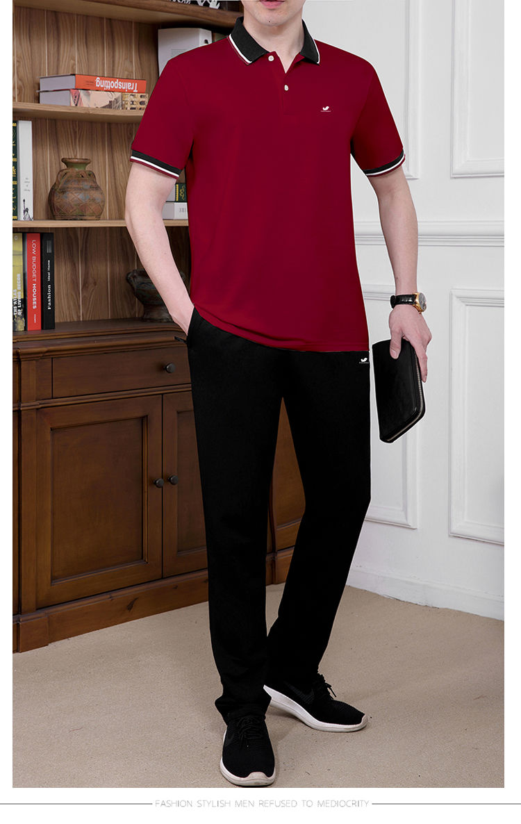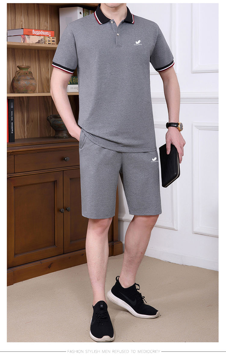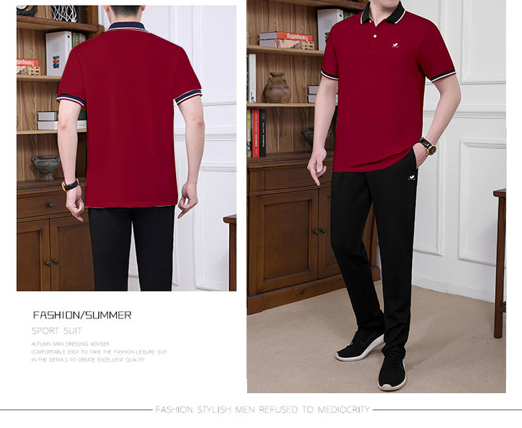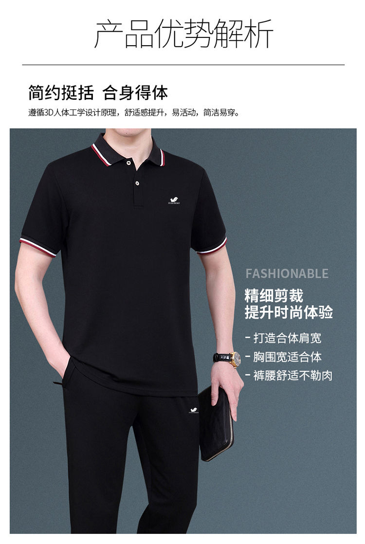 商品名稱:純棉【富貴鳥】夏季男士運(yùn)動休閑套裝爸爸裝中老年父親短袖二件套