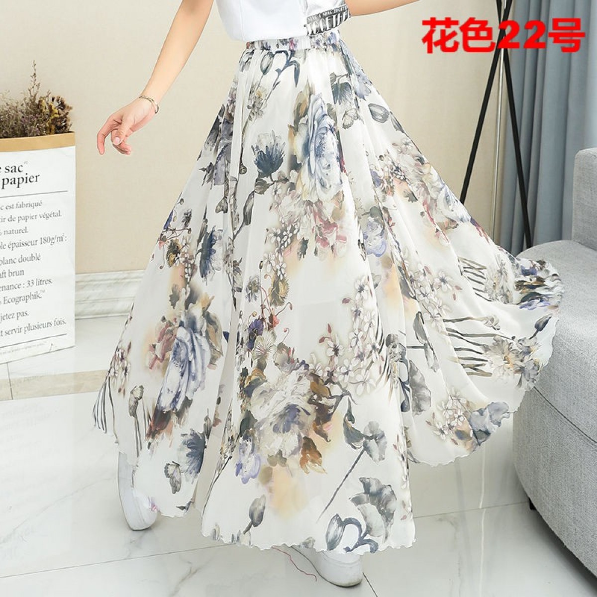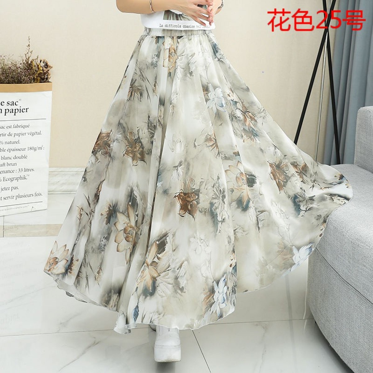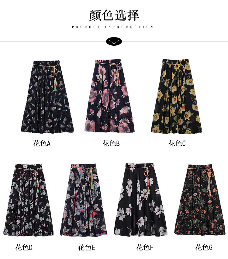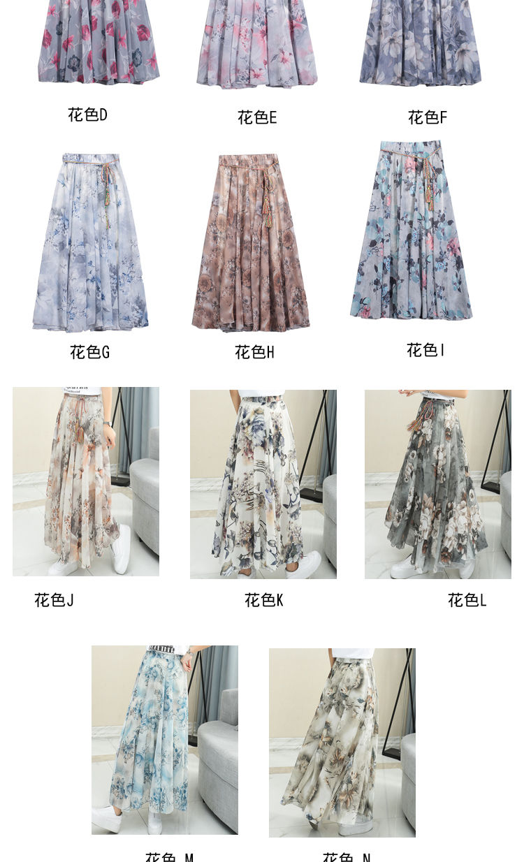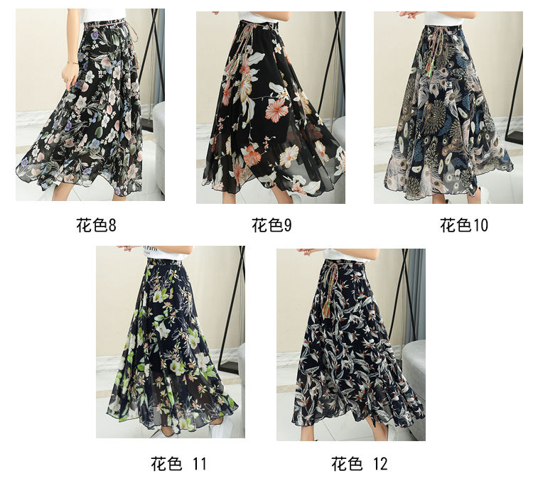 雪紡碎花半身裙 中長款夏季印花大擺百搭高腰a字長裙