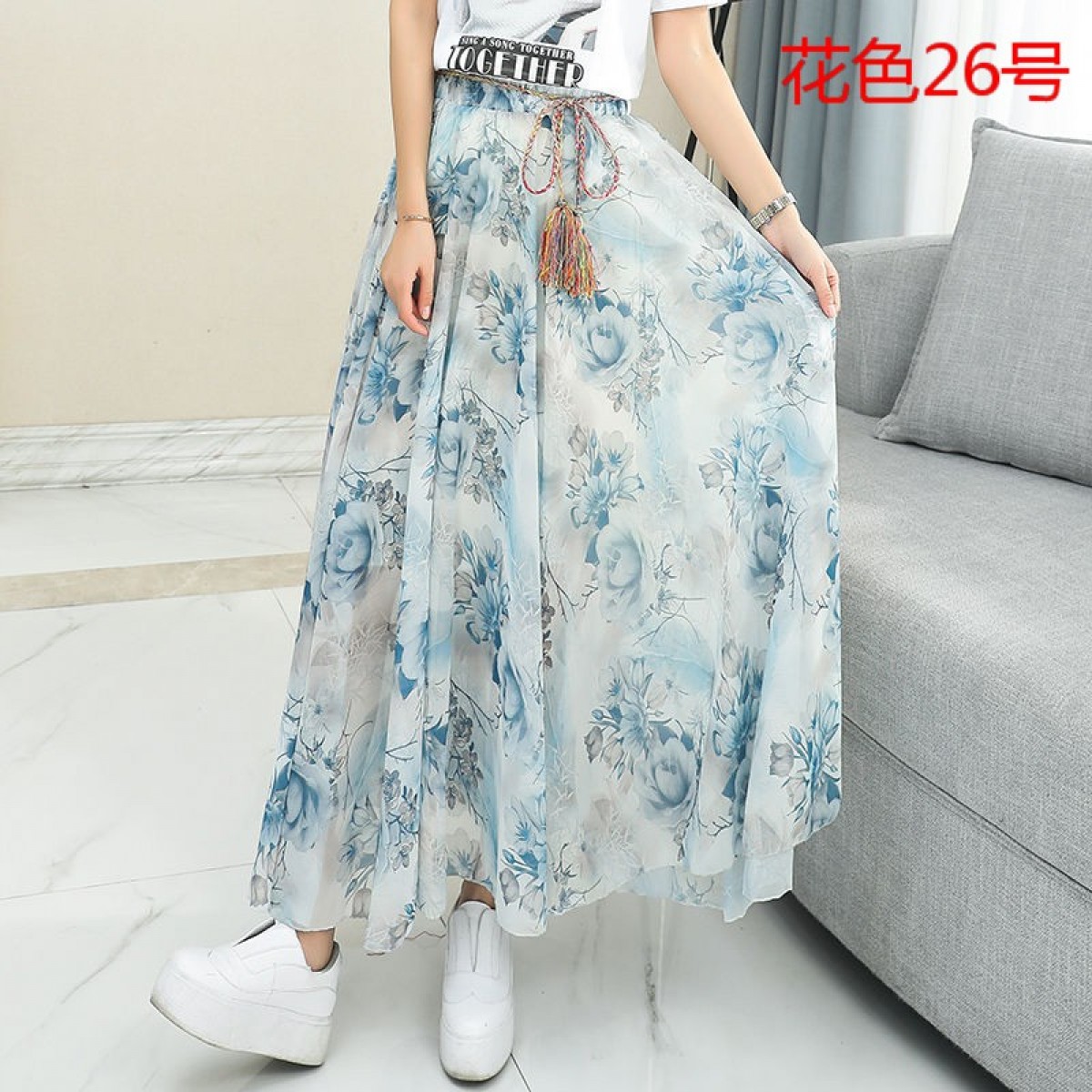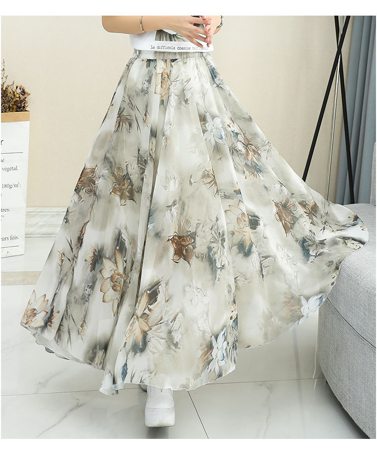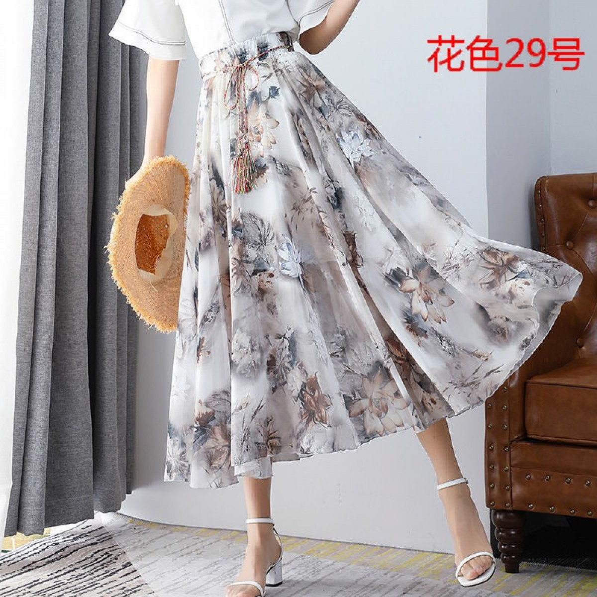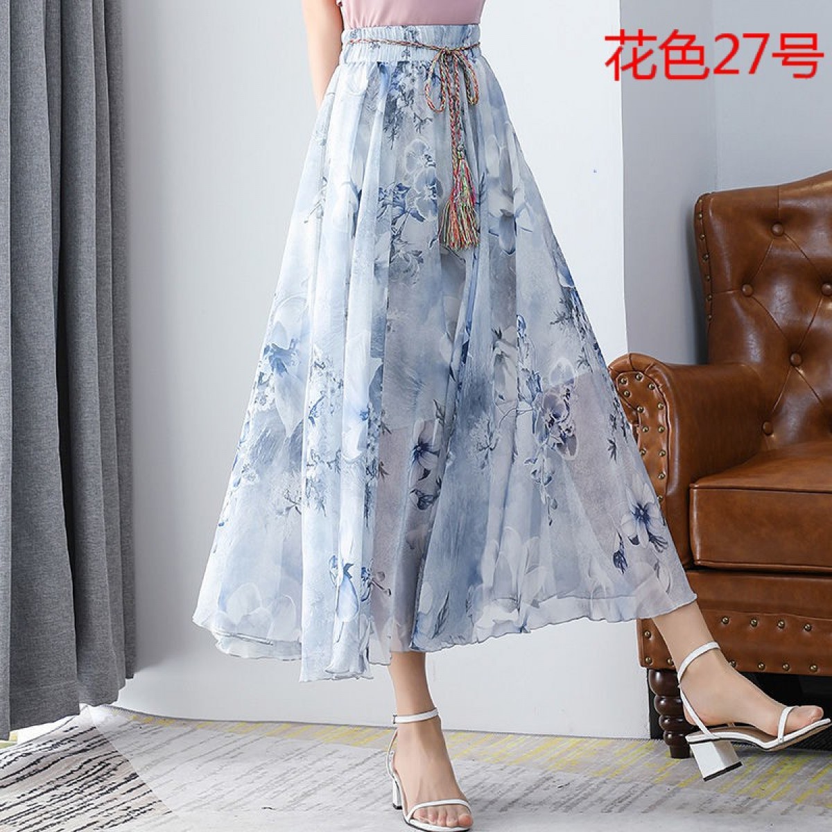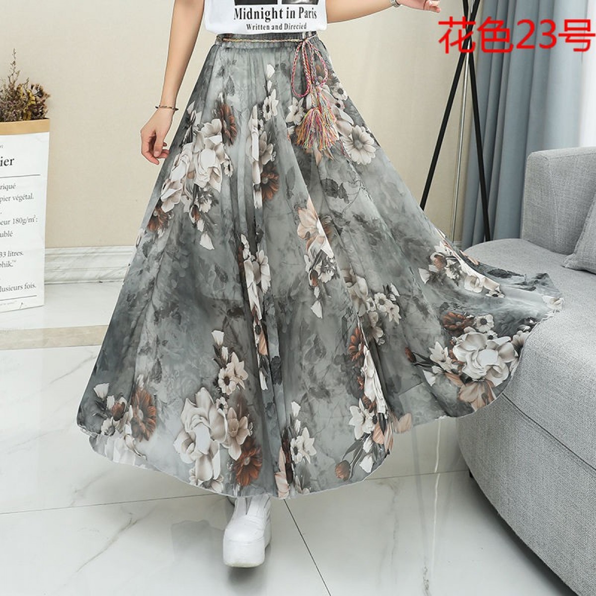 雪紡碎花半身裙 中長款夏季印花大擺百搭高腰a字長裙