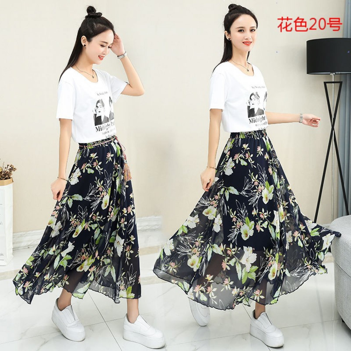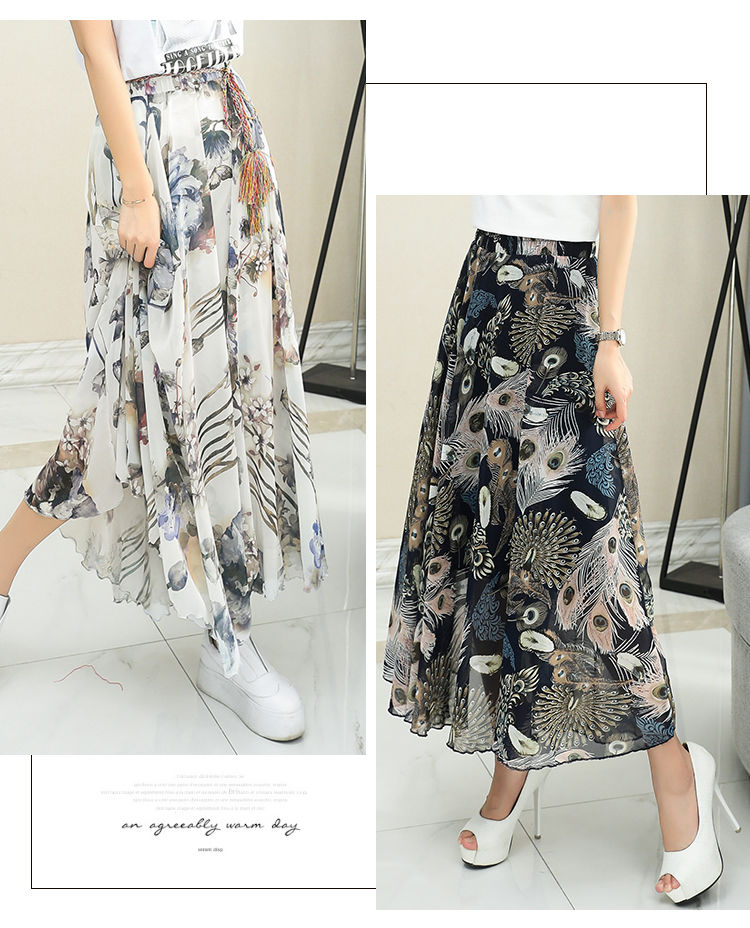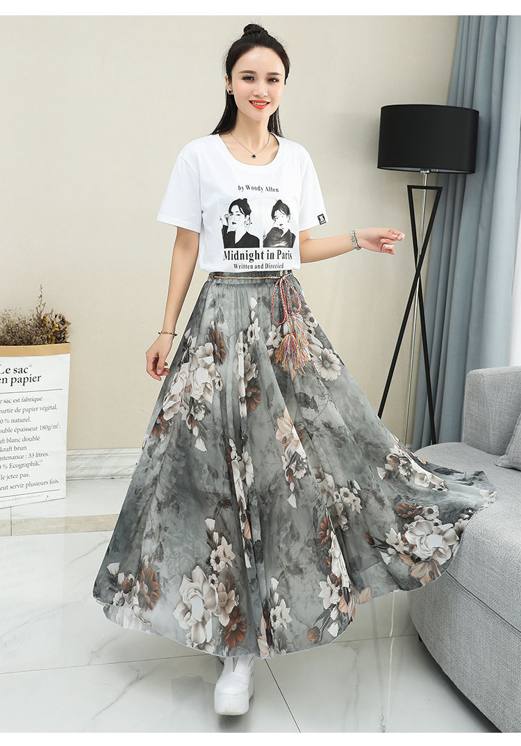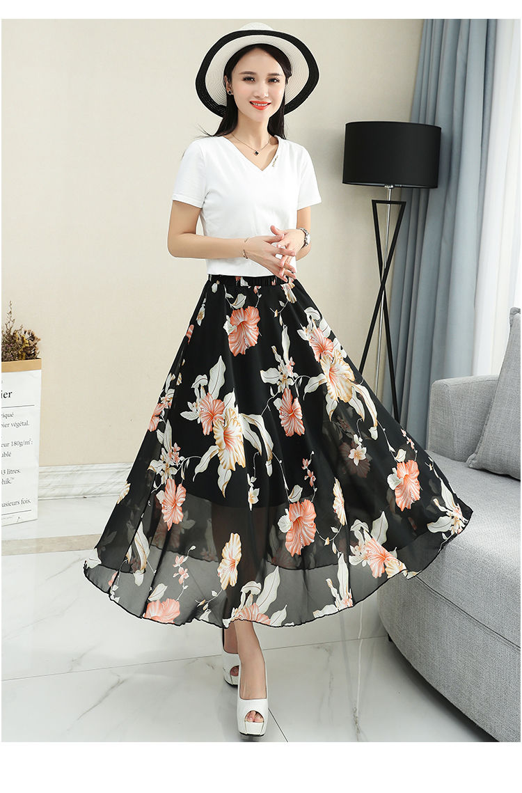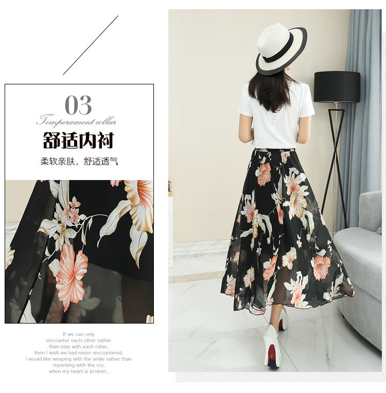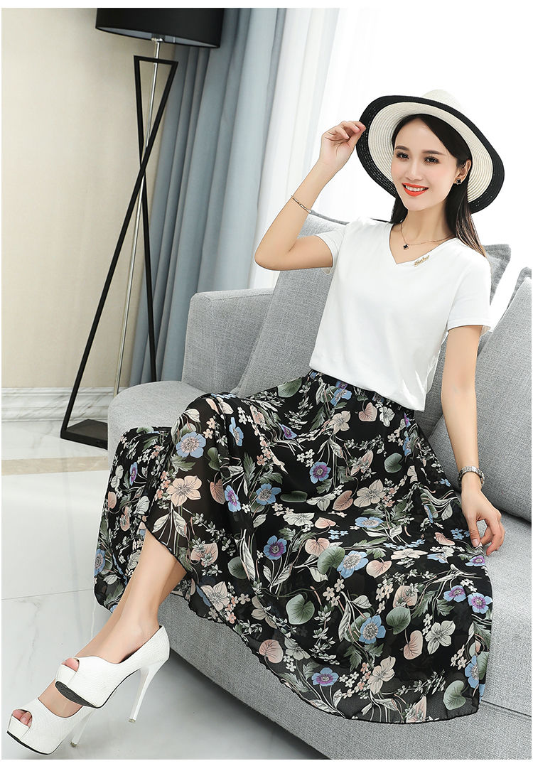 雪紡碎花半身裙 中長款夏季印花大擺百搭高腰a字長裙