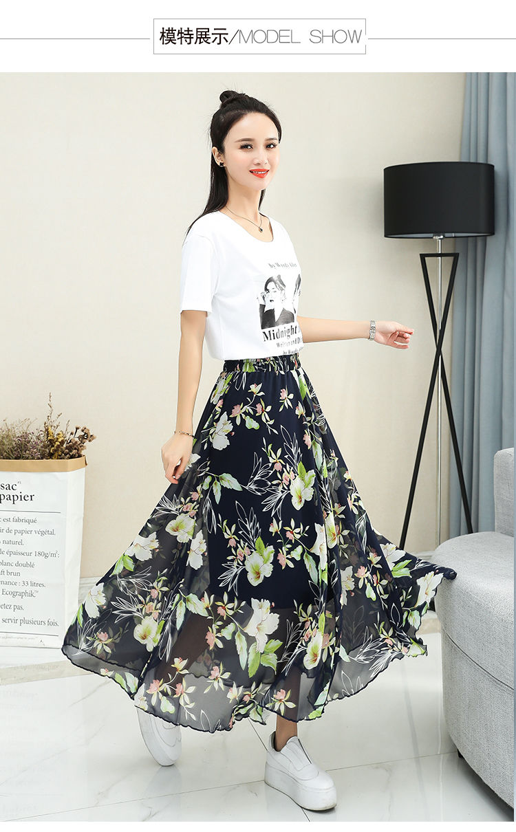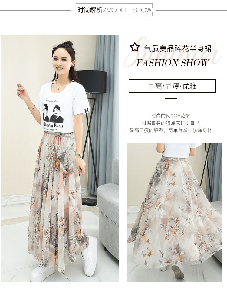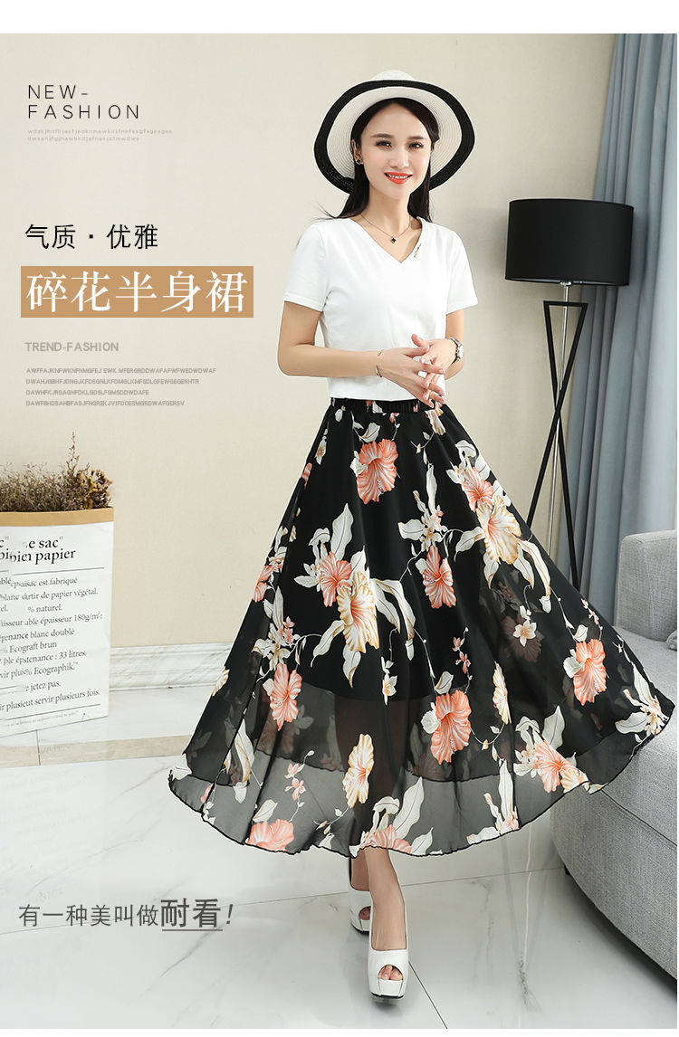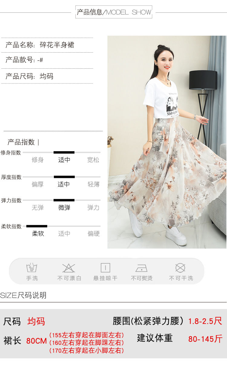 商品名稱:雪紡碎花半身裙 中長款夏季印花大擺百搭高腰a字長裙