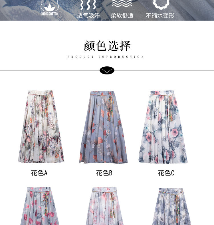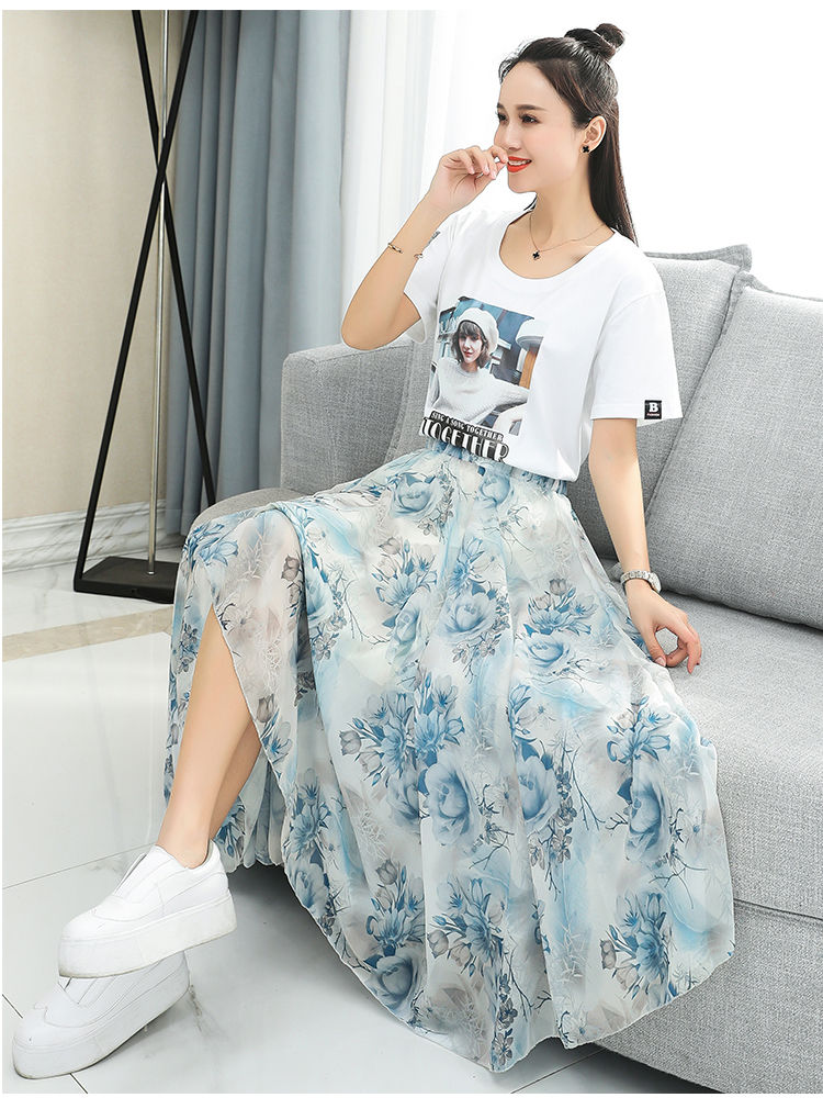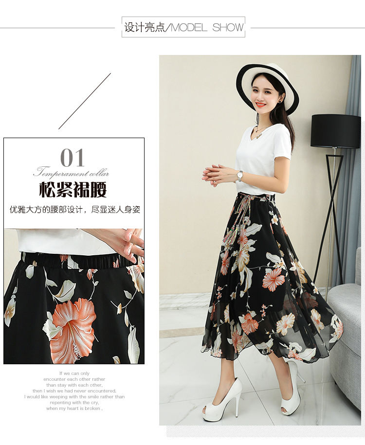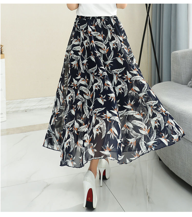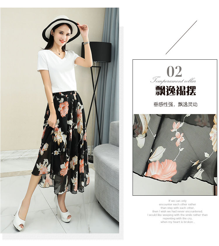 商品名稱:雪紡碎花半身裙 中長款夏季印花大擺百搭高腰a字長裙