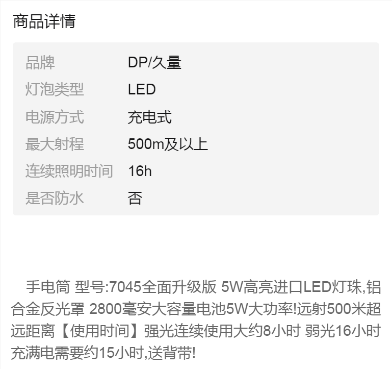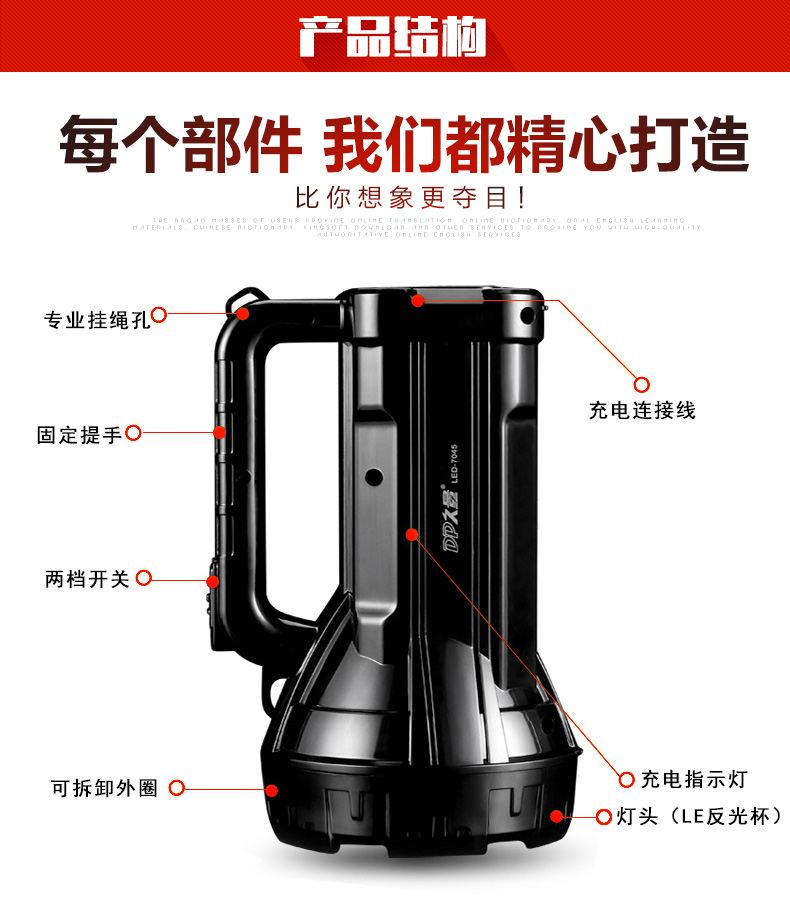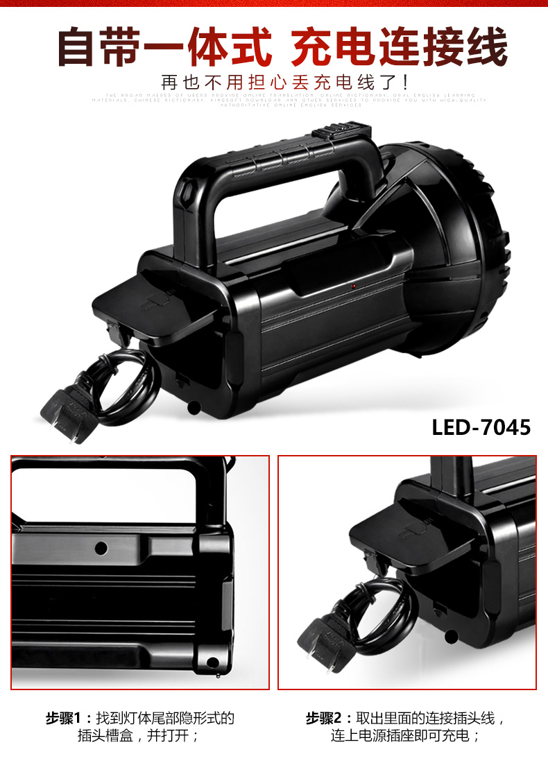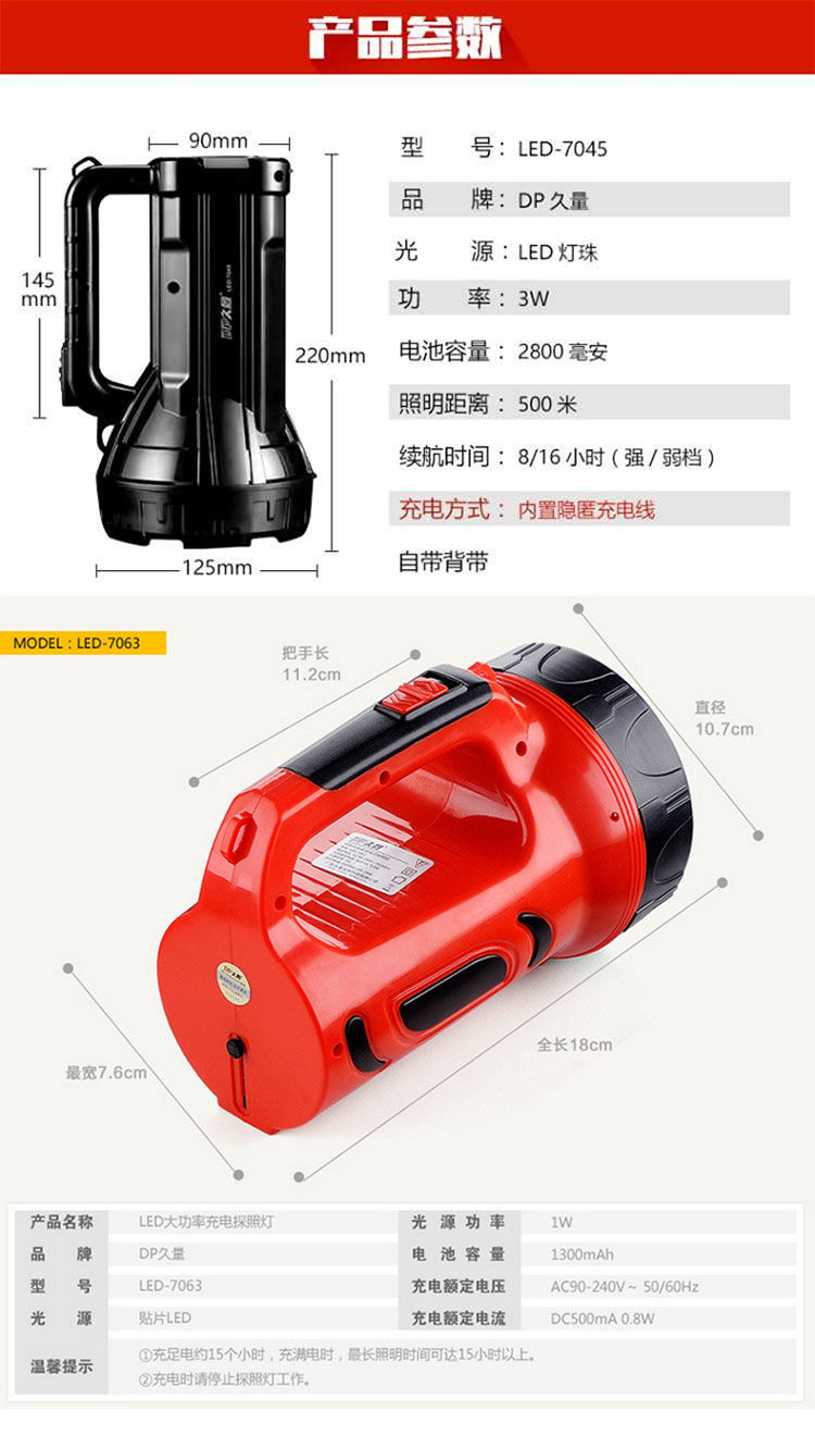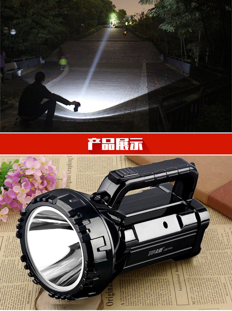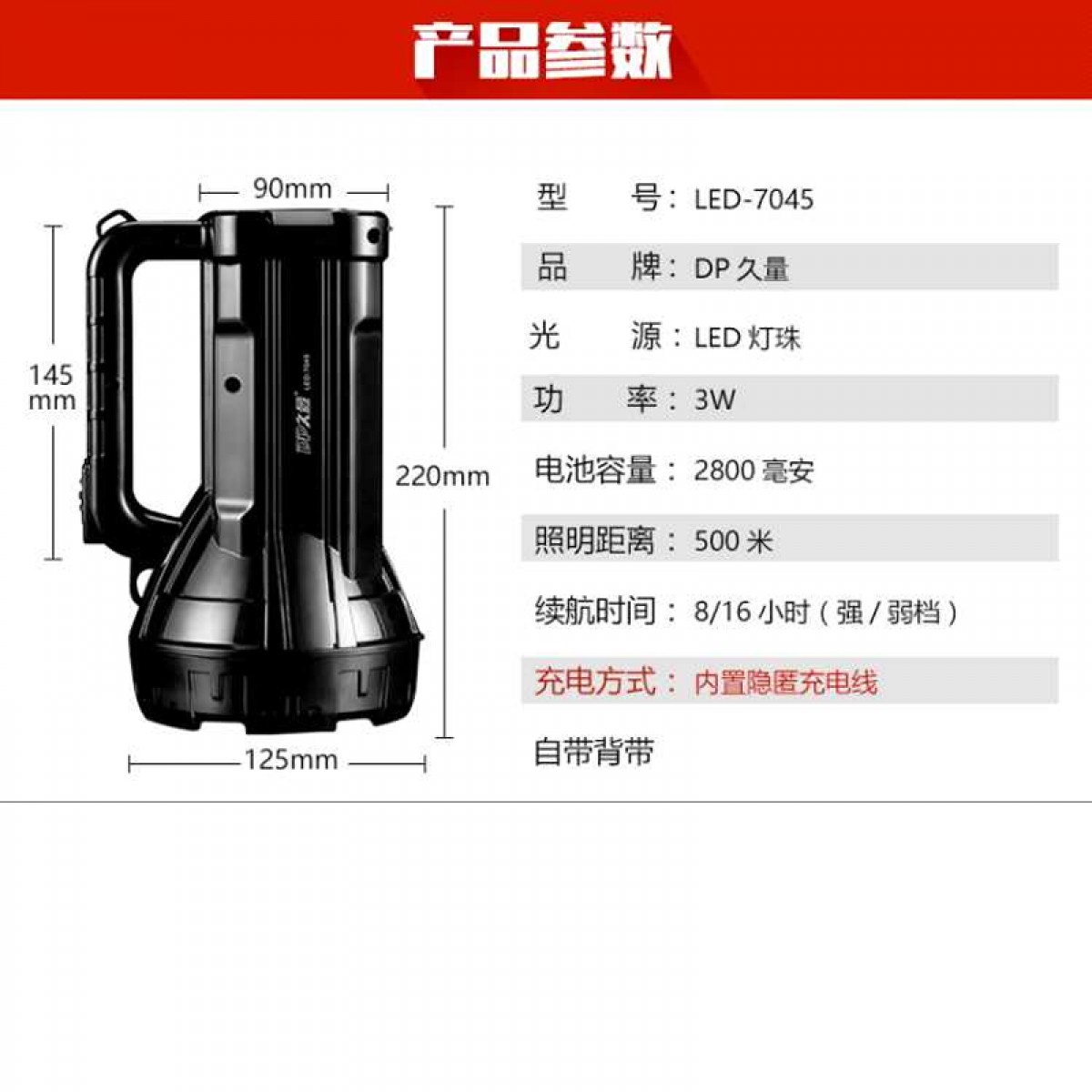 商品名稱:久量超亮探照燈工地夜釣魚手電筒強(qiáng)光可充電手提遠(yuǎn)射戶外照明野外