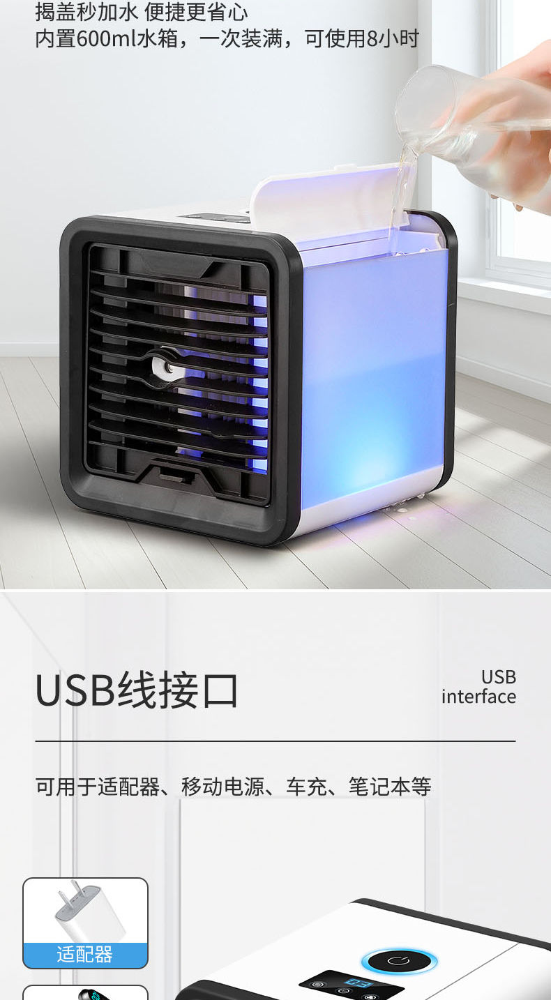 商品名稱:家用迷你小空調(diào)宿舍USB小型冷風(fēng)扇辦公室制冷保濕冷風(fēng)機(jī)可加冰晶
