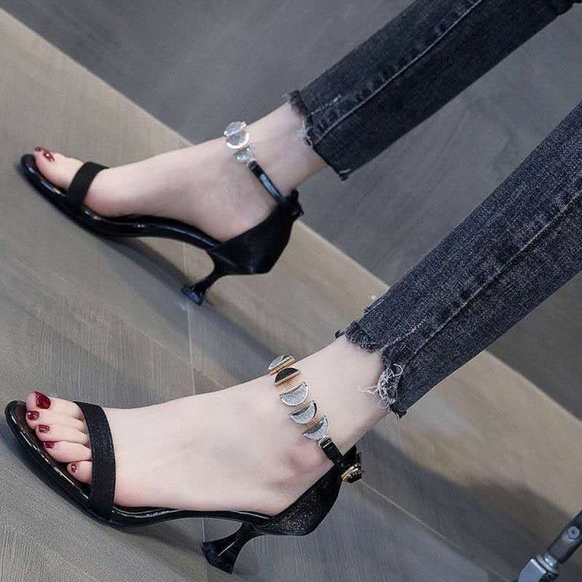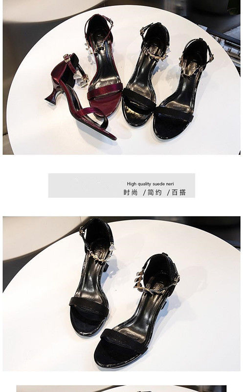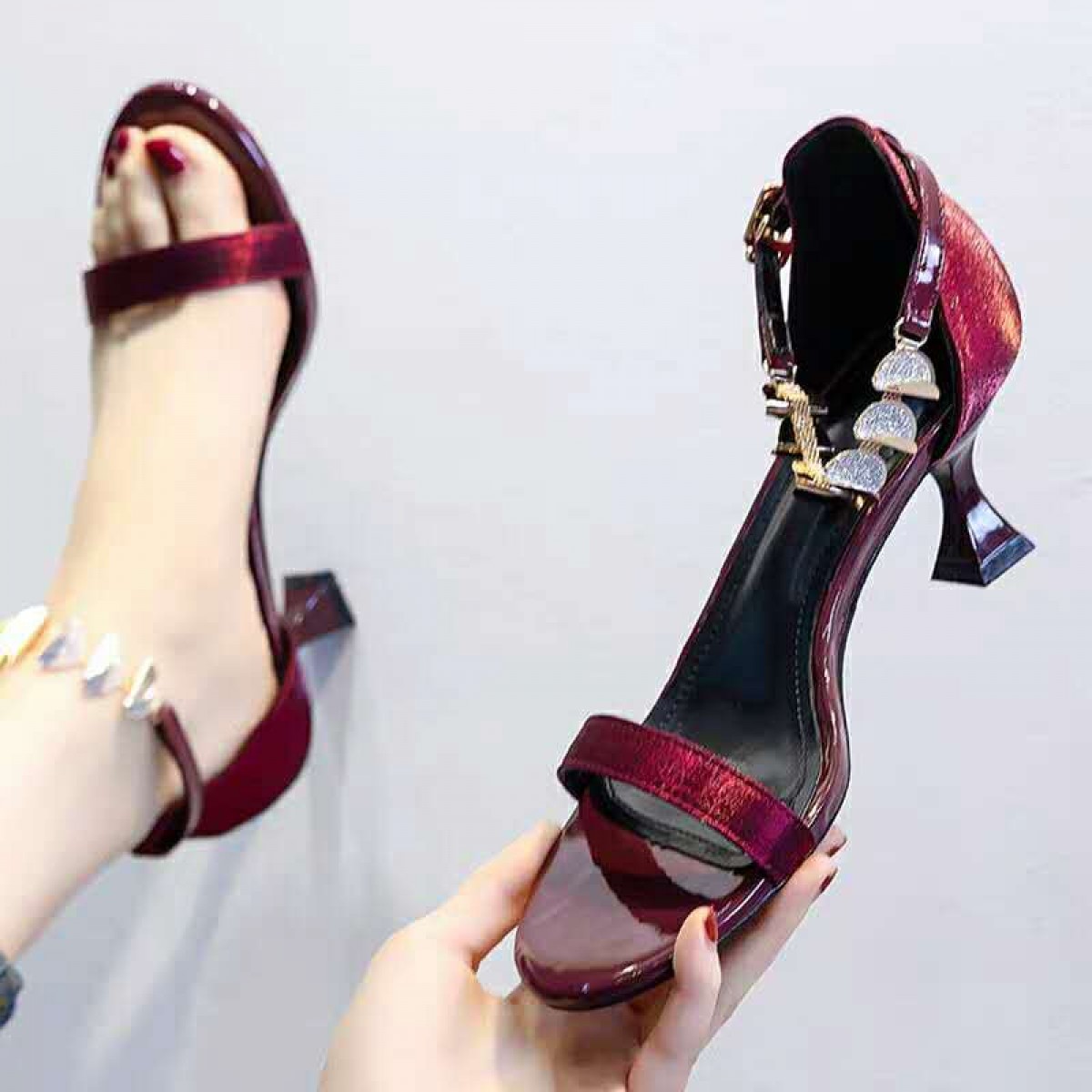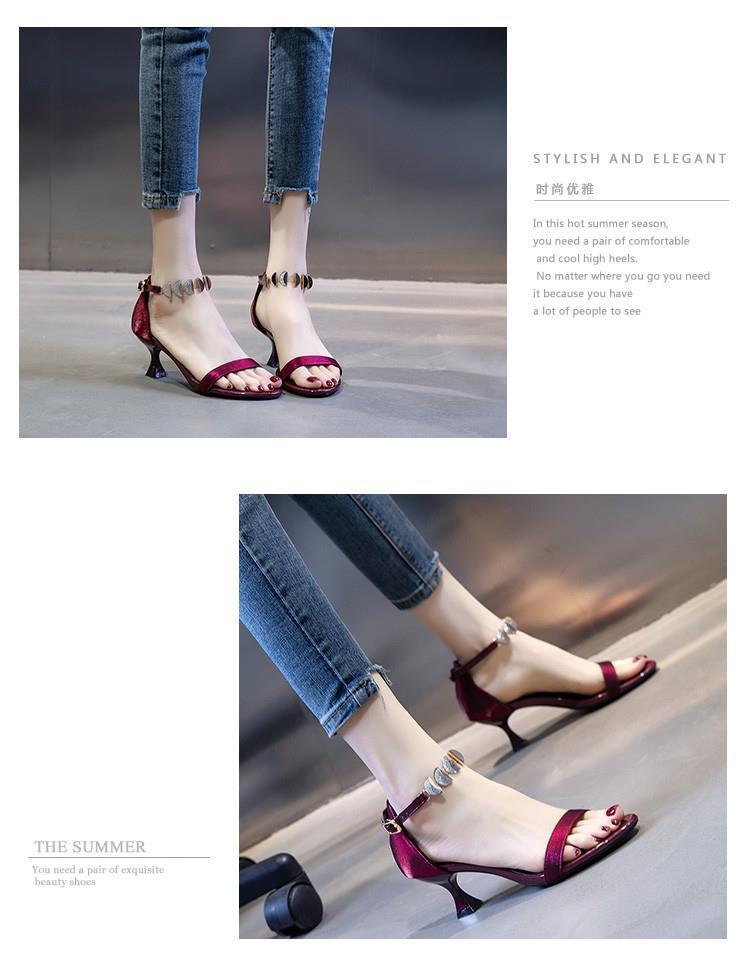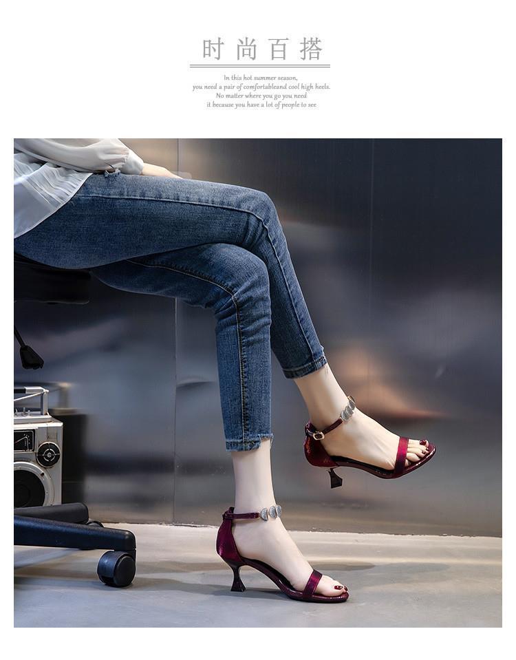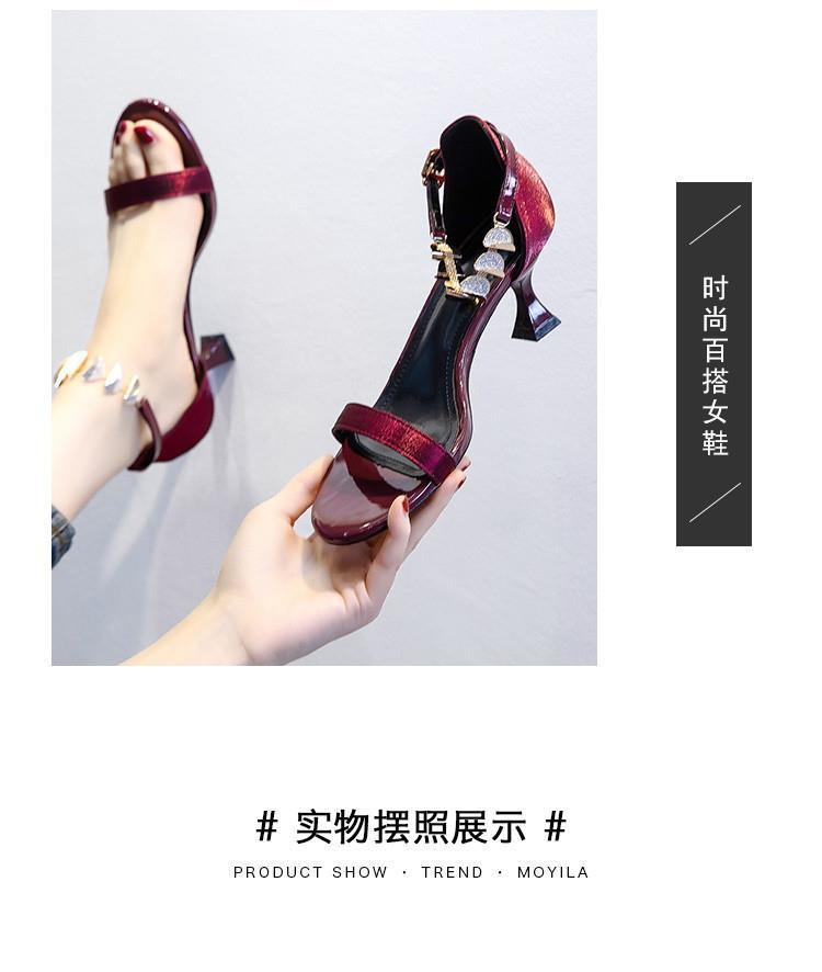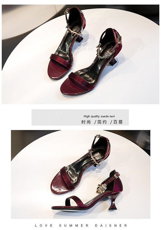 商品名稱:2020新款紅色涼鞋女夏季圓頭低細(xì)跟一字扣時(shí)尚外穿中跟百搭鞋子女