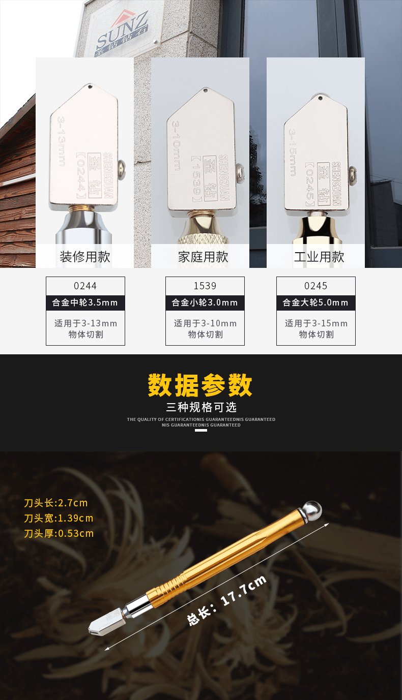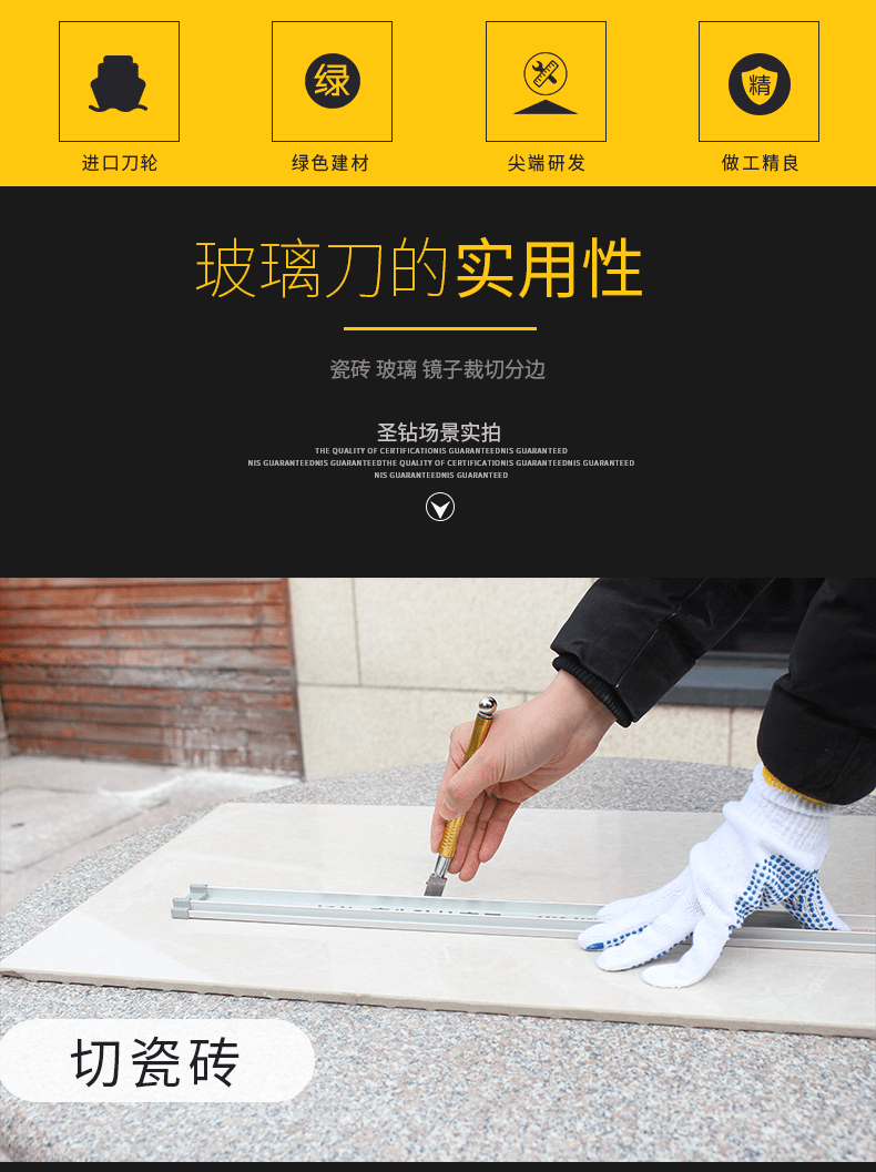 商品名稱:圣鉆玻璃刀多功能瓷磚金剛石家用劃厚玻璃瓷磚玻璃刀頭瓷磚切割器