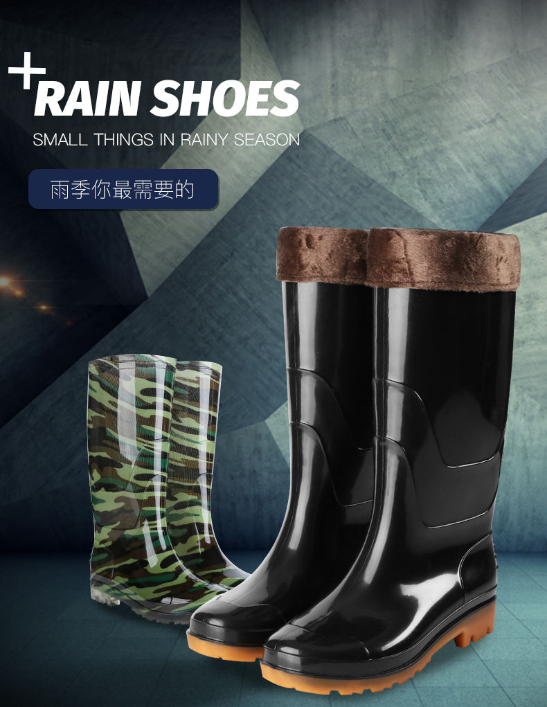 商品名稱:男士高筒水鞋加絨短筒中筒防水雨鞋工地廚房釣魚雨靴耐酸堿膠鞋男