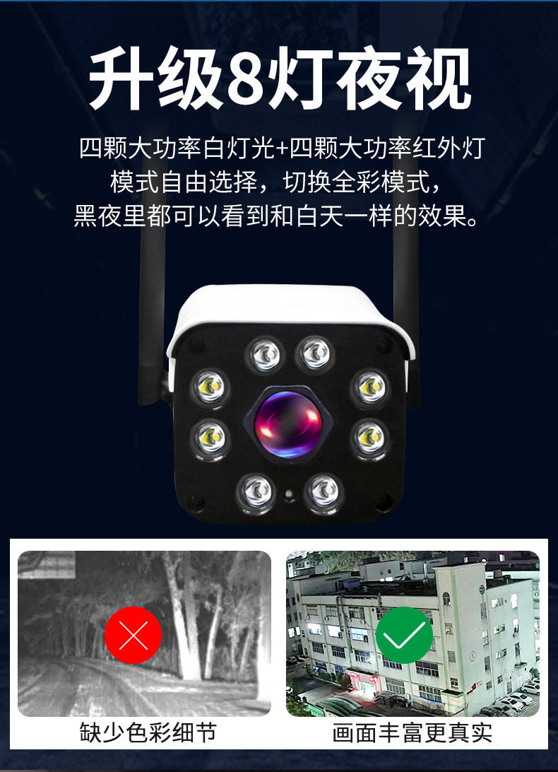 商品名稱:家用監(jiān)控攝像頭室外無線wifi連手機遠程監(jiān)控器高清夜視防水