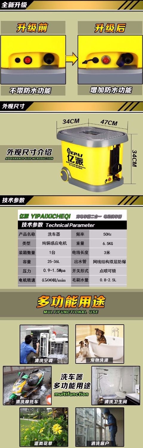 商品名稱:洗車器洗車機(jī)億派220全自動12v家用高壓泵水槍小型清洗機(jī)洗車神器