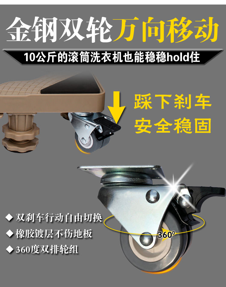 商品名稱:海爾洗衣機(jī)底座專用移動(dòng)萬(wàn)向輪支架全自動(dòng)8/9/10公斤滾筒波輪托架