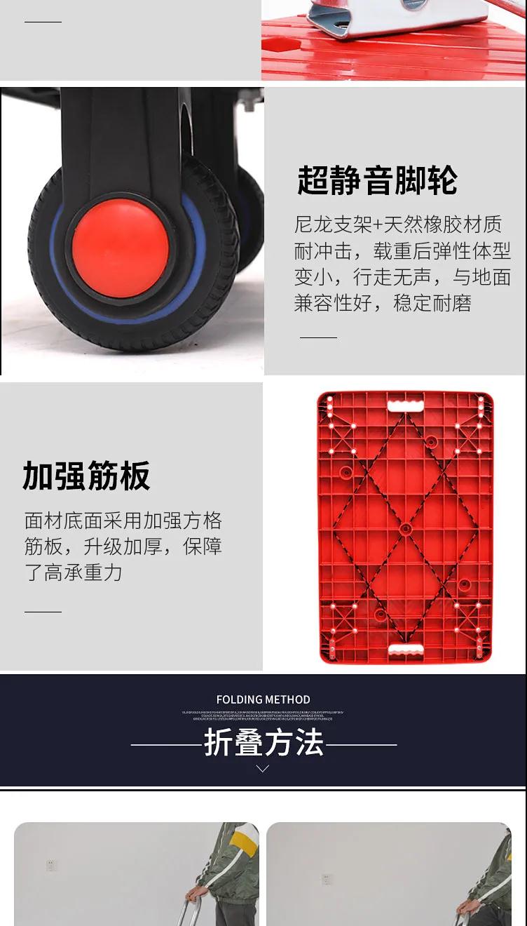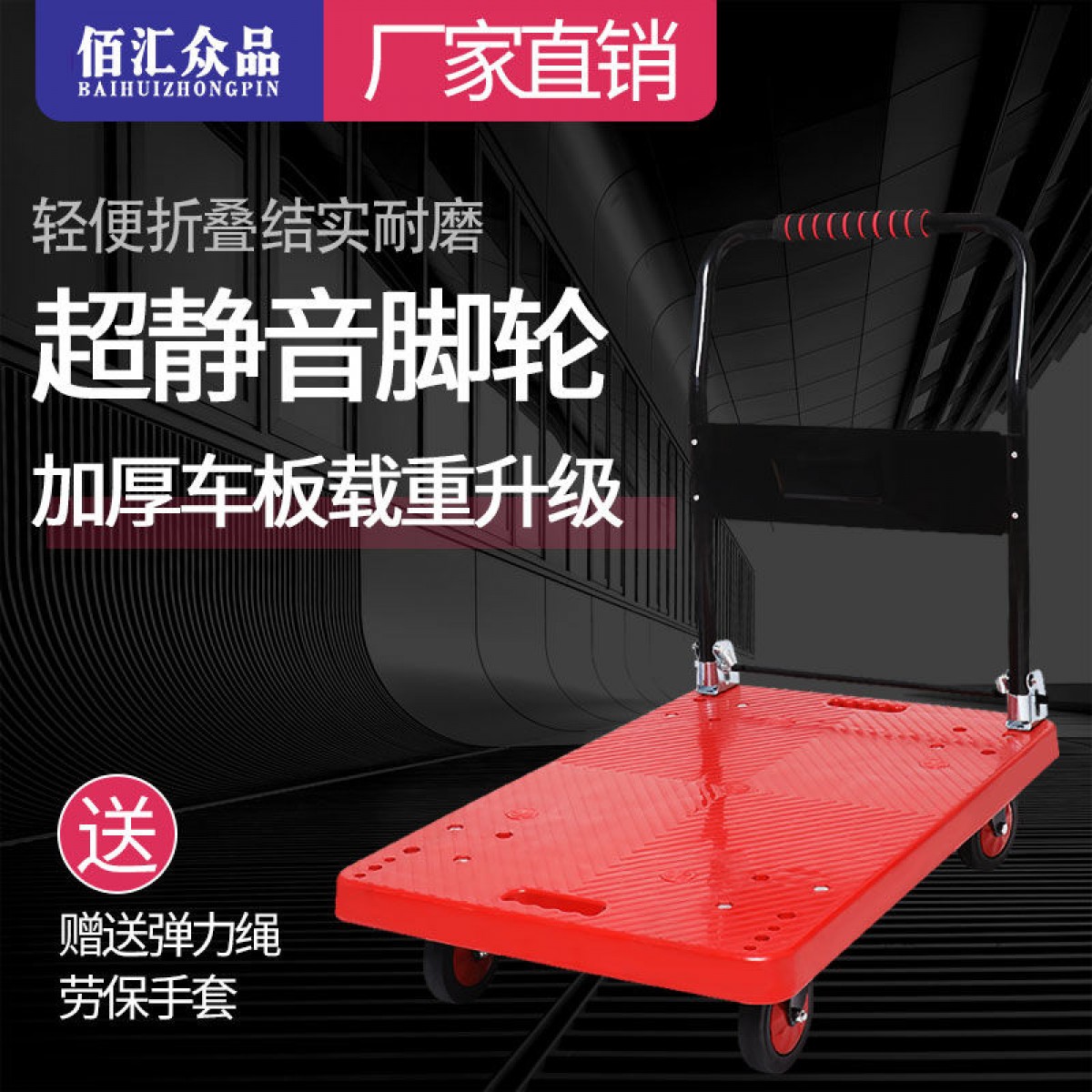 商品名稱:靜音手推車拉貨折疊平板拖車搬運車加厚四輪便攜家用小推車小拉車