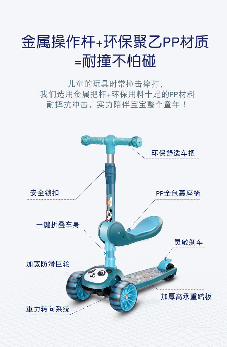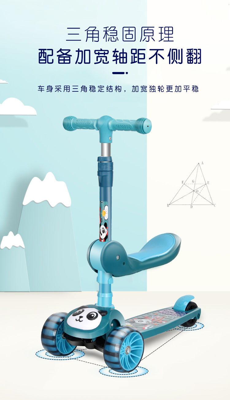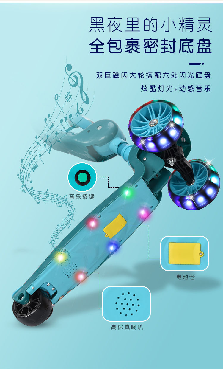 商品名稱:滑板車兒童1-3-6歲可坐三合一男女寶寶音樂閃光小孩踏板車溜溜車