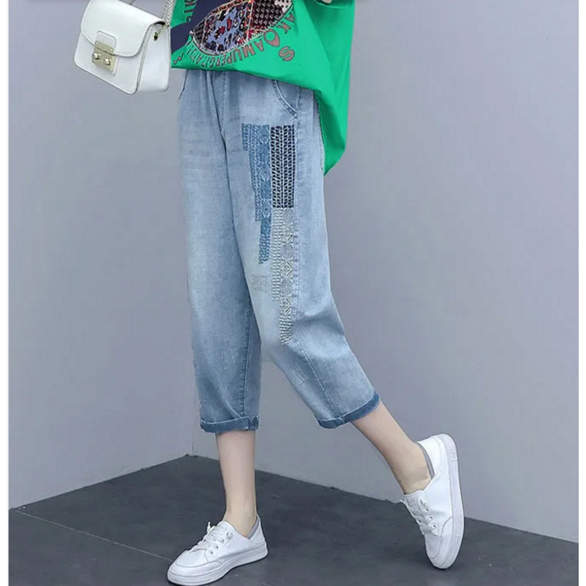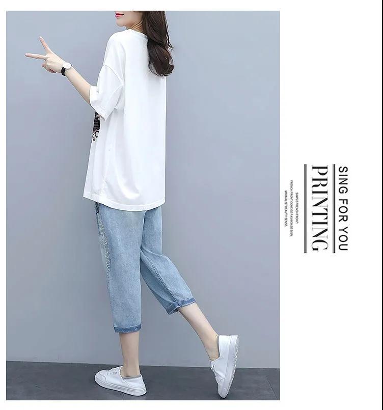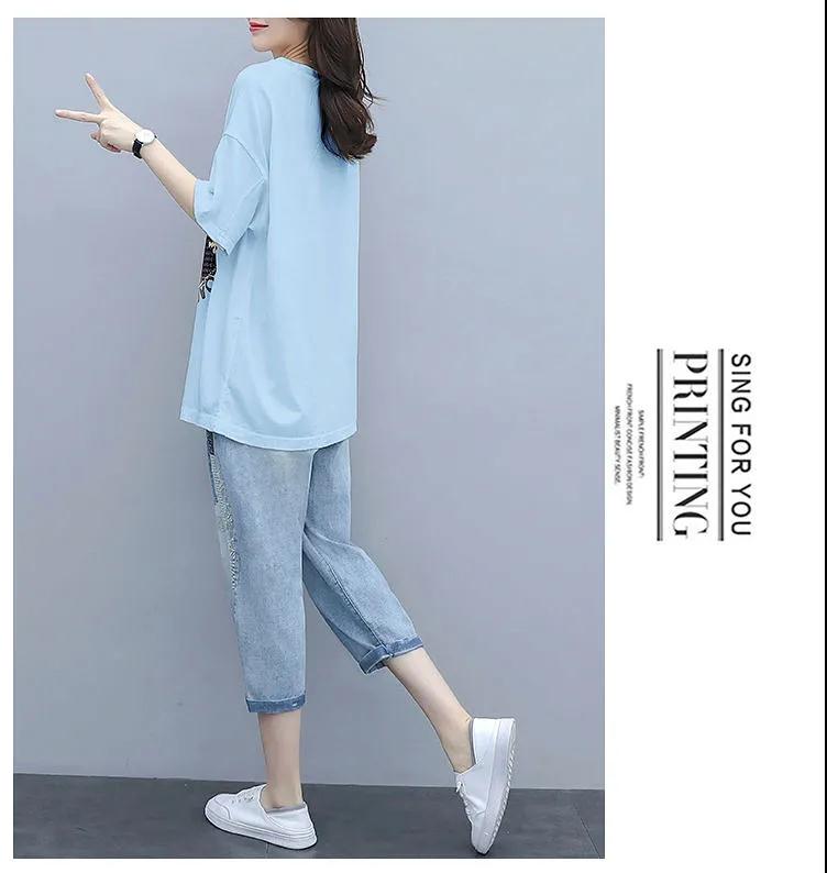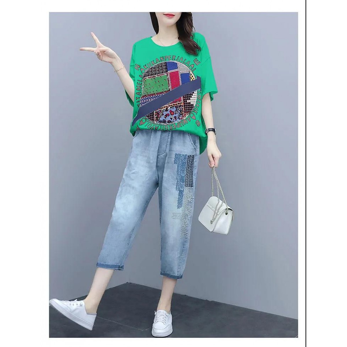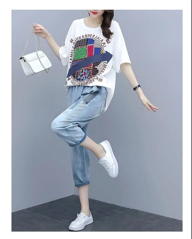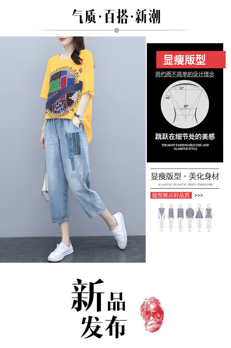 2020年夏季單/套裝新款韓版寬松大碼拼貼刺繡休閑時尚套裝女夏裝