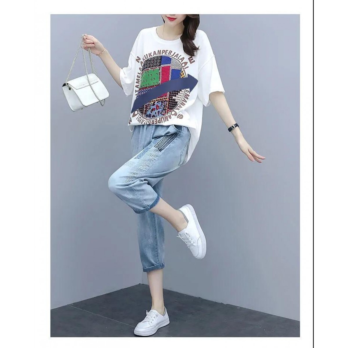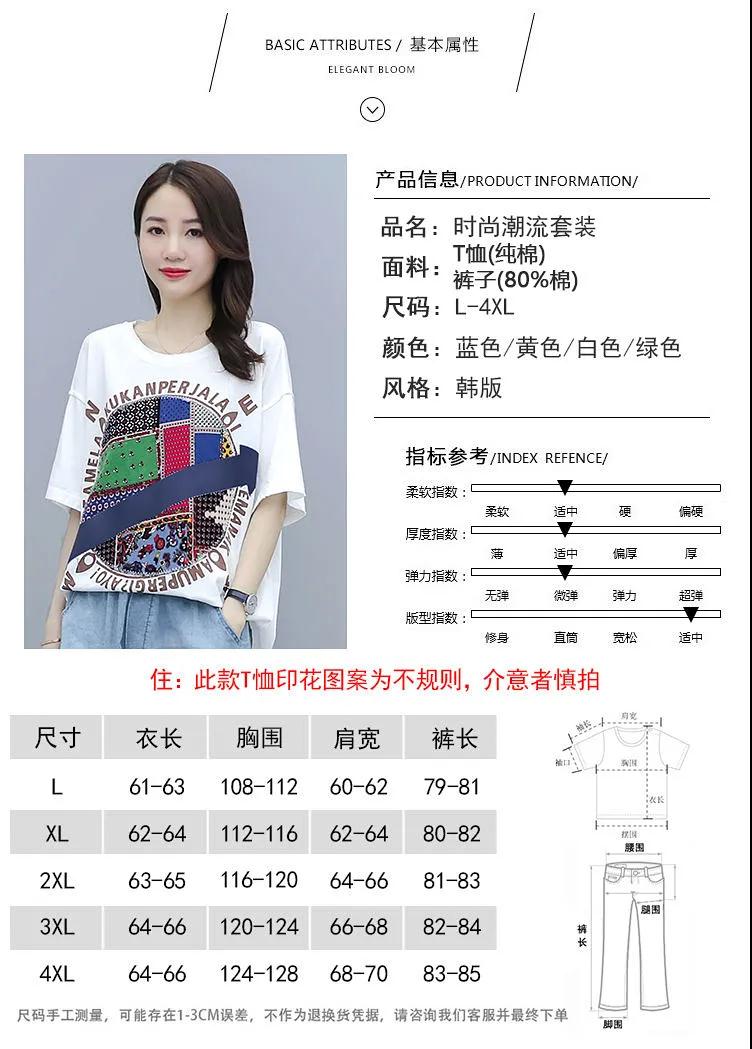 商品名稱:2020年夏季單/套裝新款韓版寬松大碼拼貼刺繡休閑時尚套裝女夏裝