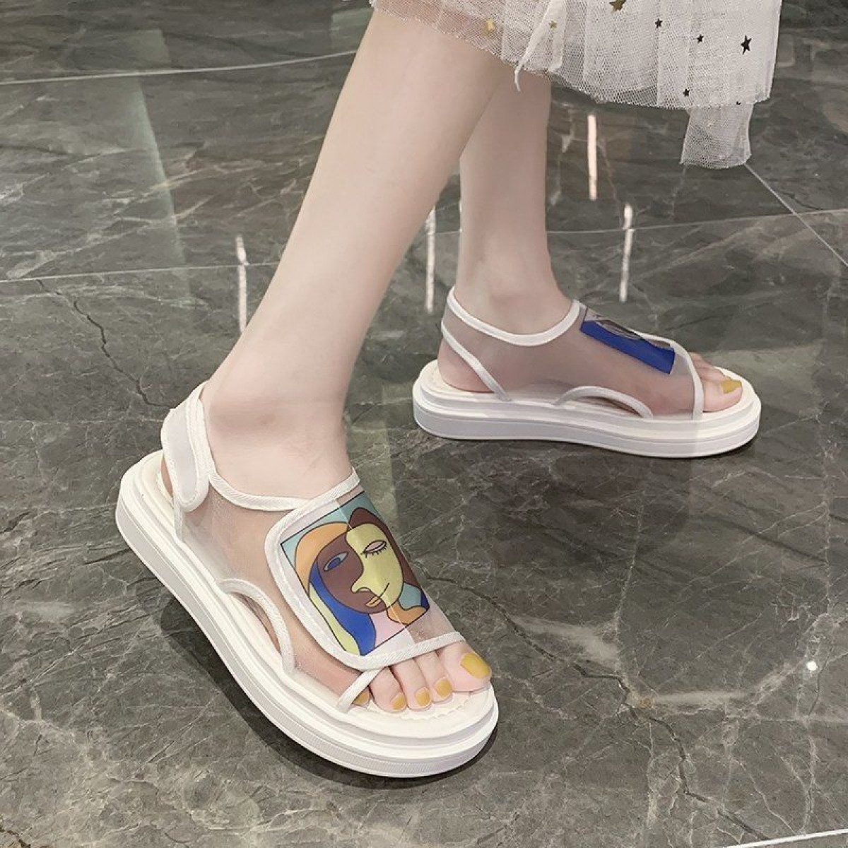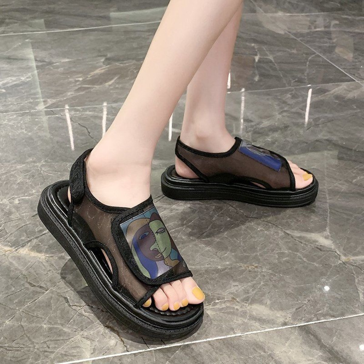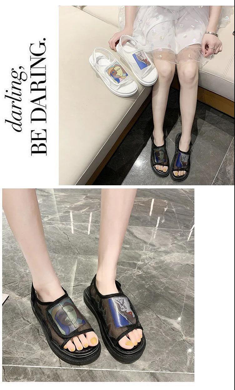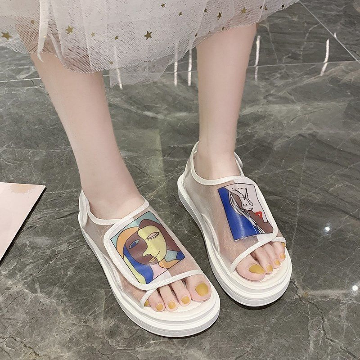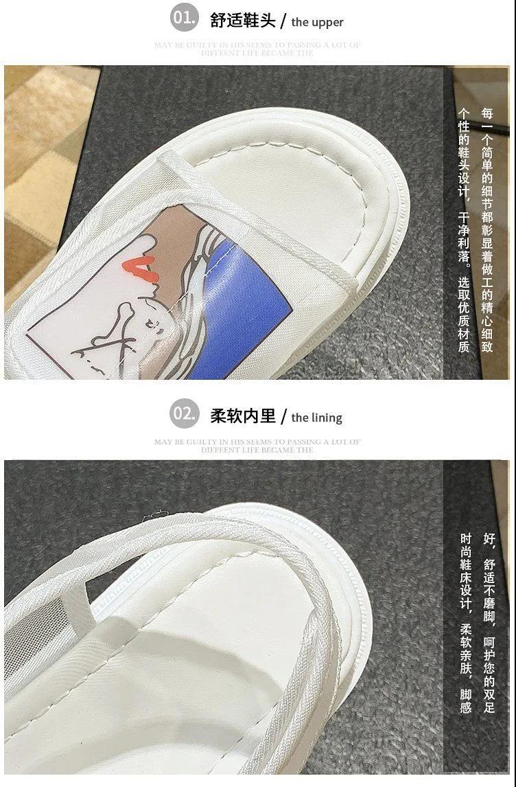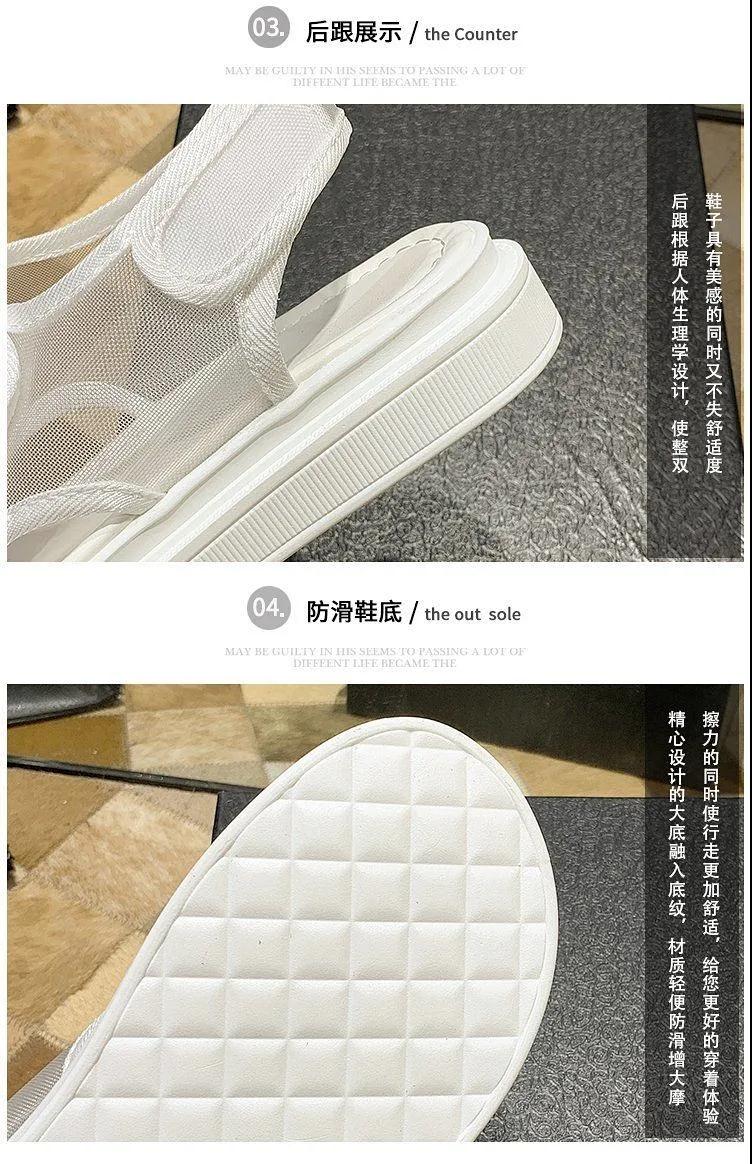 商品名稱:鞋子女夏2020年新款學(xué)生百搭歐根紗網(wǎng)鞋平底一字帶仙女涼鞋ins潮