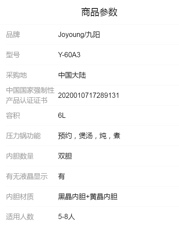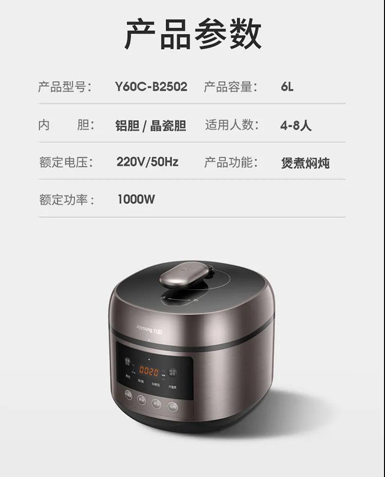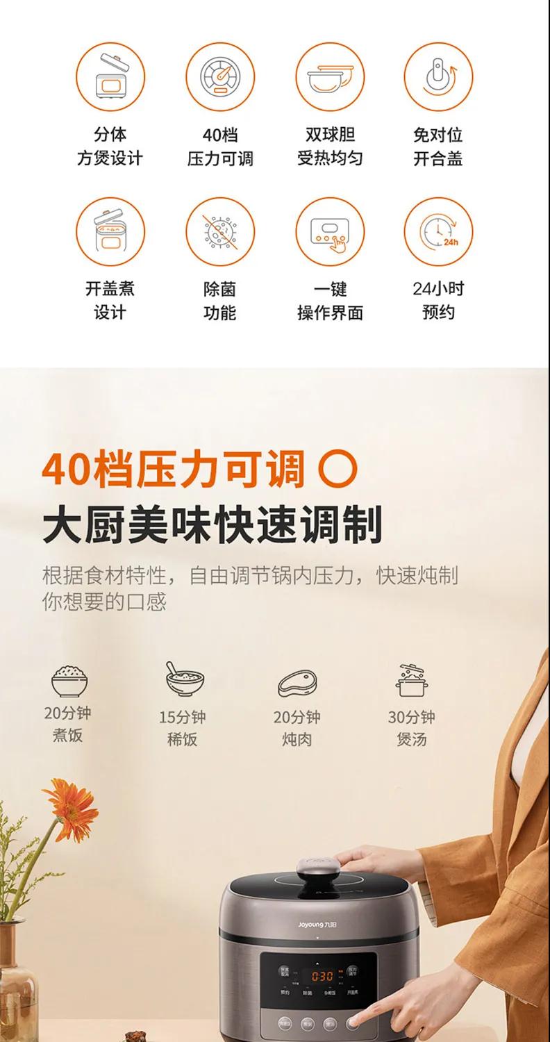 商品名稱:九陽電壓力鍋6L智能電高壓鍋家用人雙膽球釜多功能方煲壓力鍋正品