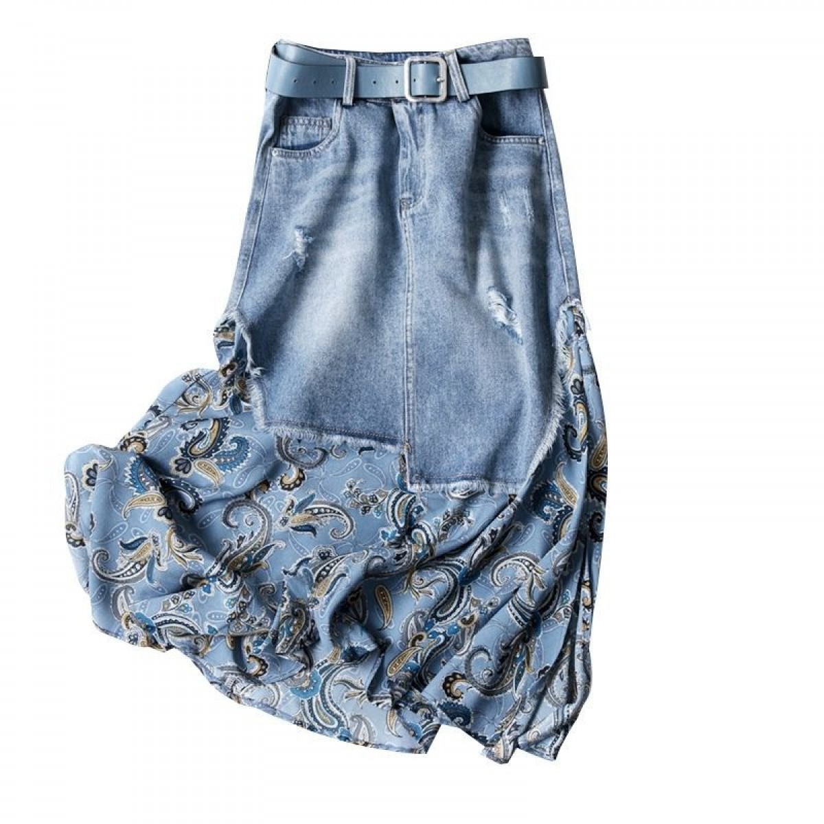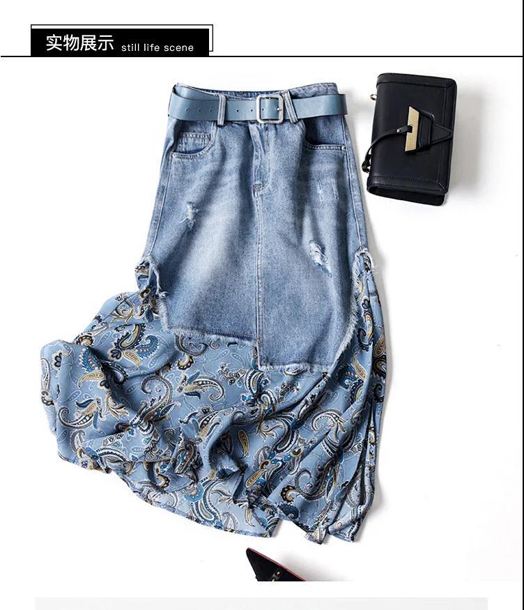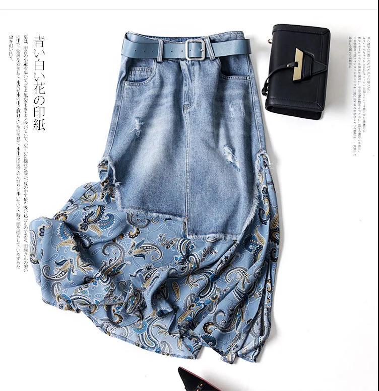 商品名稱:【專柜品質(zhì)】天絲牛仔裙半身裙女雪紡印花不規(guī)則時尚中長半裙
