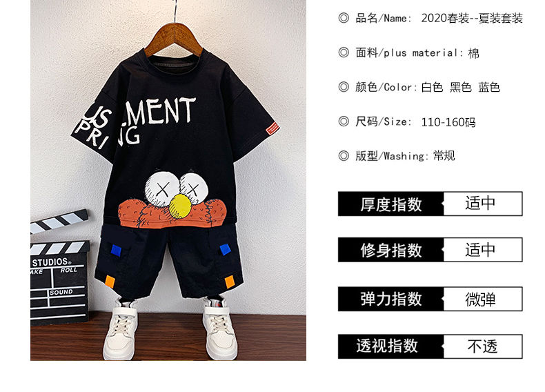 商品名稱:2020新款男童套裝夏裝兒童短袖純棉帥氣兩件套中大童夏季洋氣潮衣