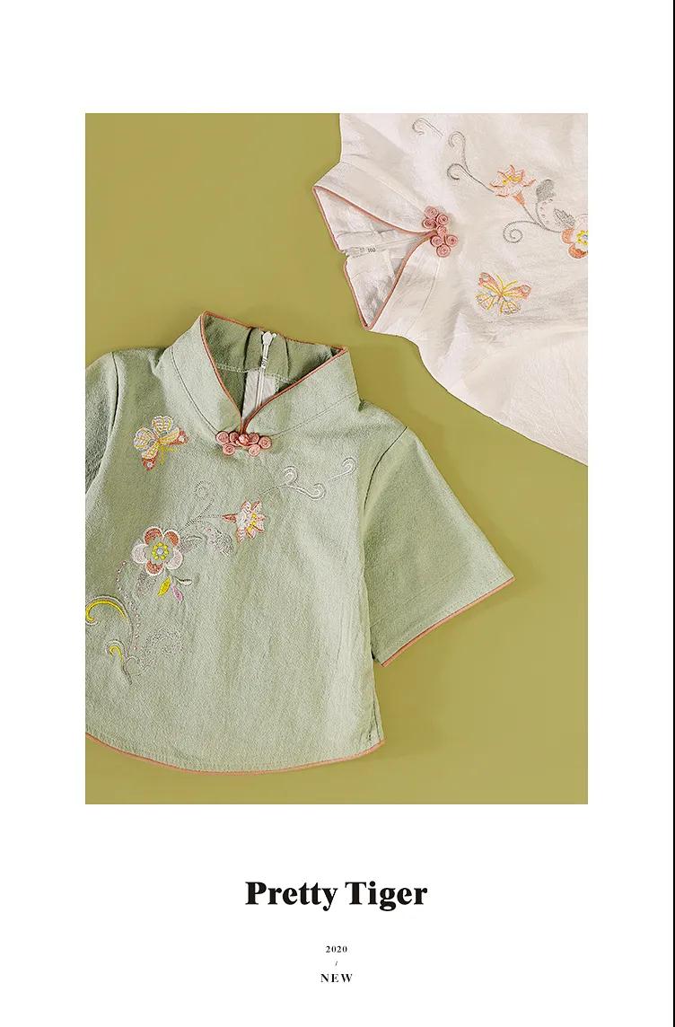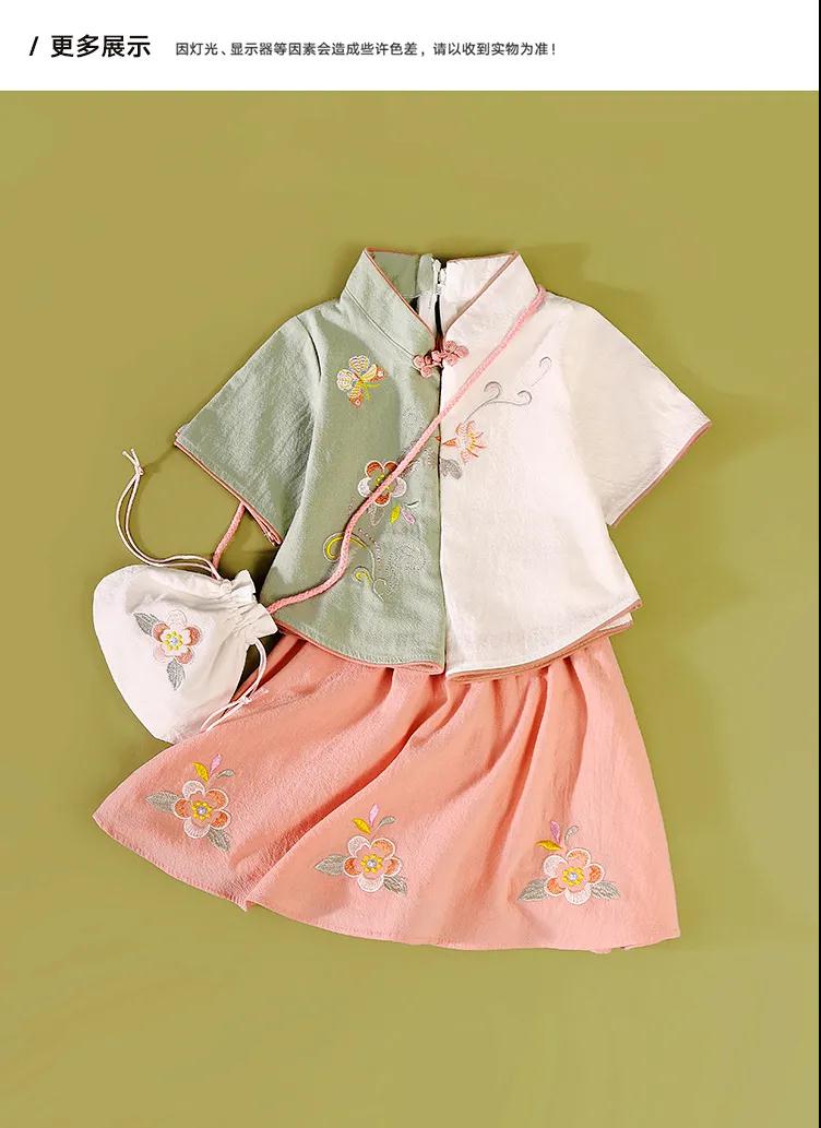 商品名稱:童裝女童中國風(fēng)春夏新款中童中式復(fù)古旗袍刺繡兒童漢服套裝