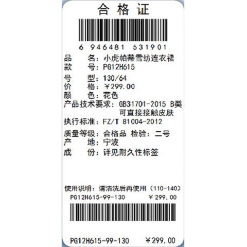 商品名稱:2020新款小虎帕蒂童裝女童中童雪紡連衣裙