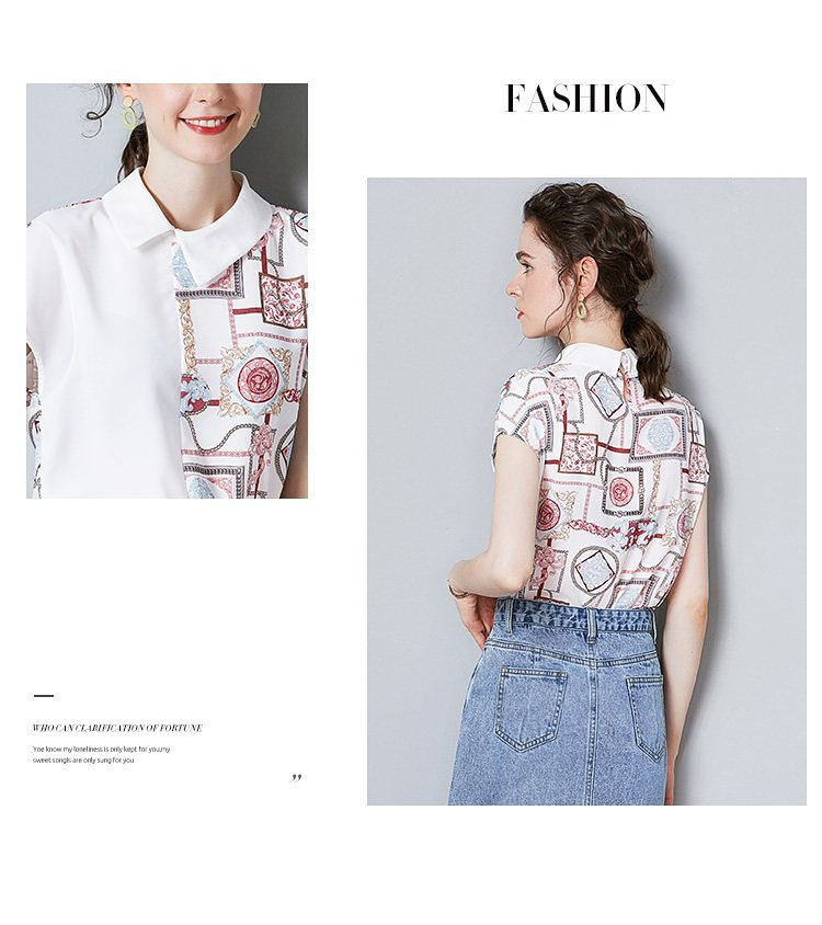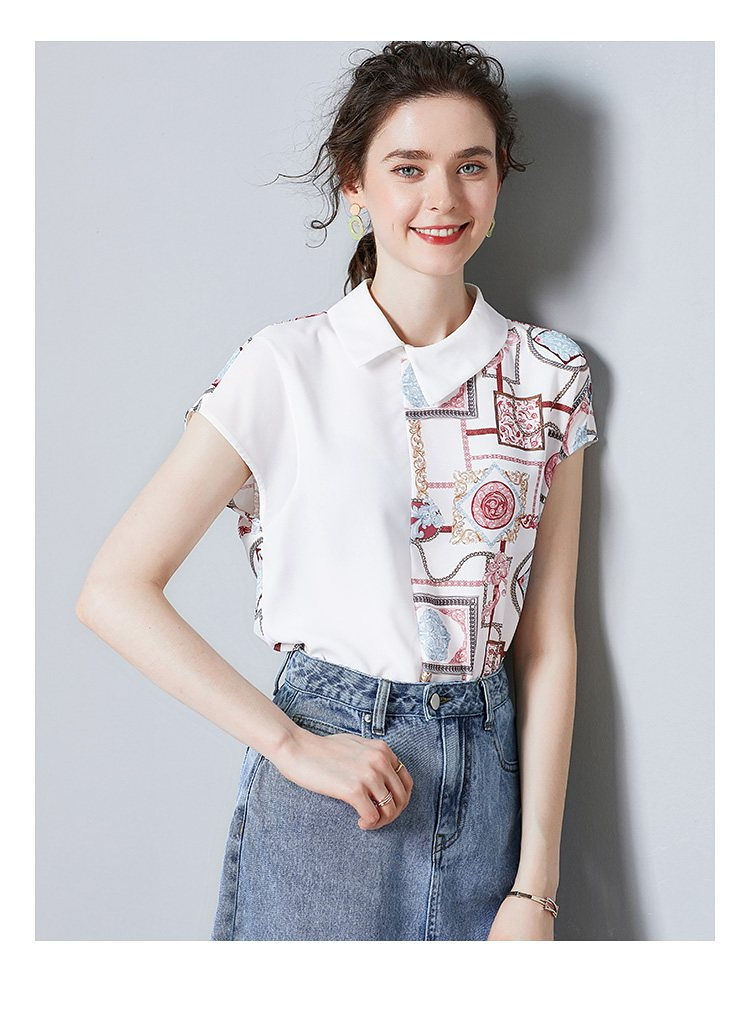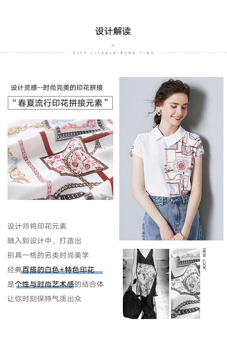 商品名稱:2020年夏季新款女士休閑簡約時尚雪紡印花拼接不對稱領子襯衫