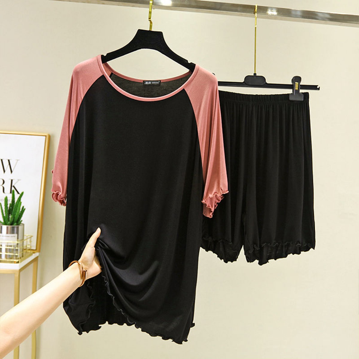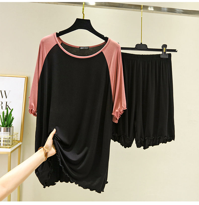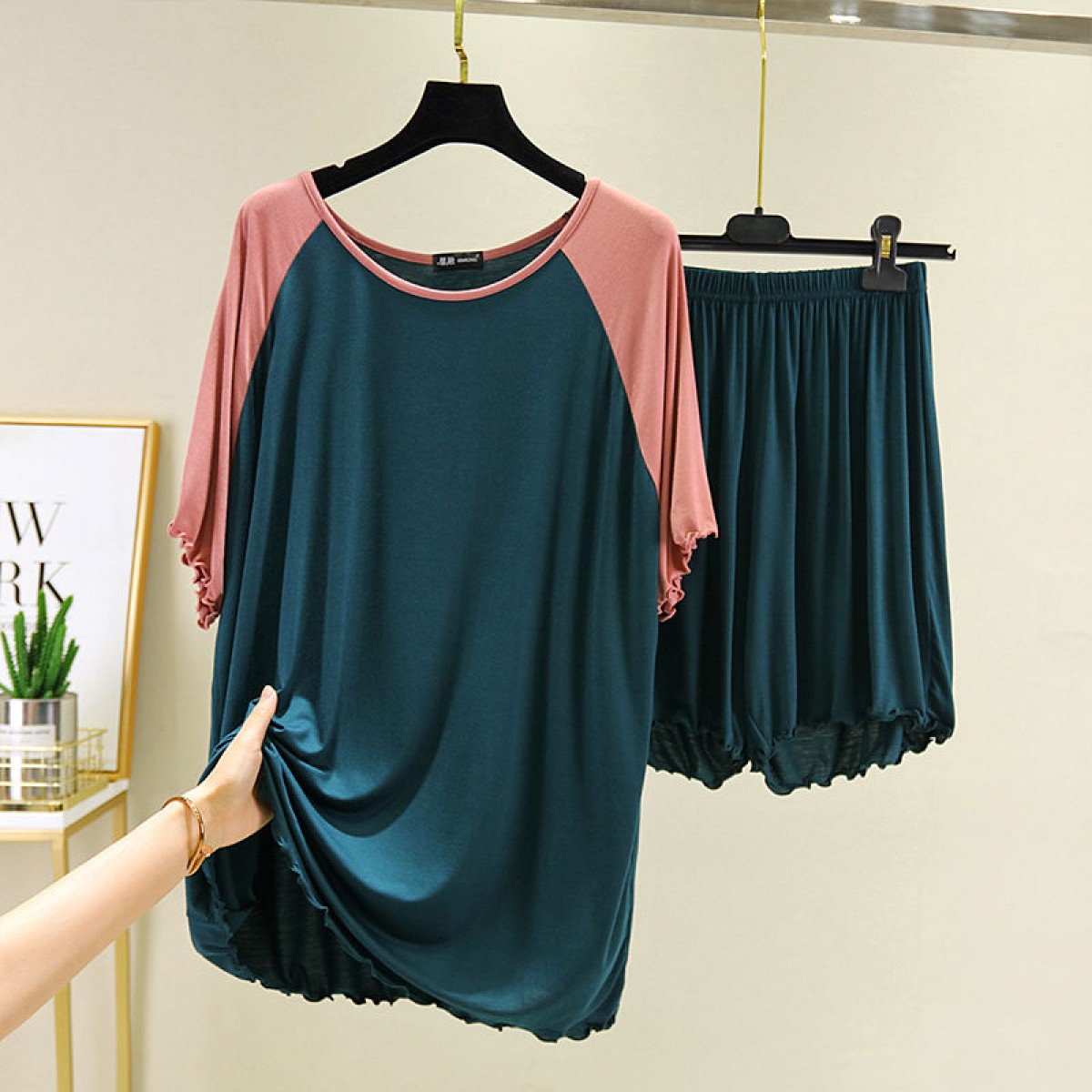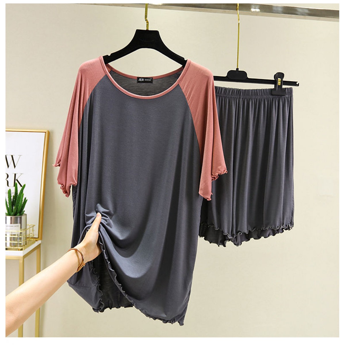 莫代爾T恤女夏季外穿打底衫短袖拼接薄款短褲睡衣兩件套裝家居服