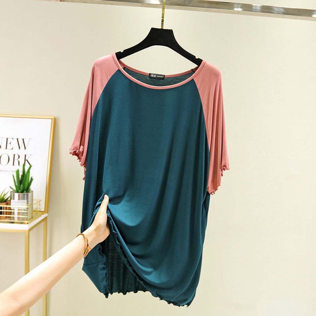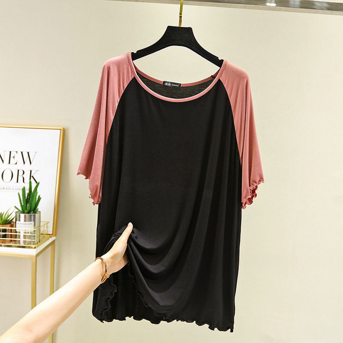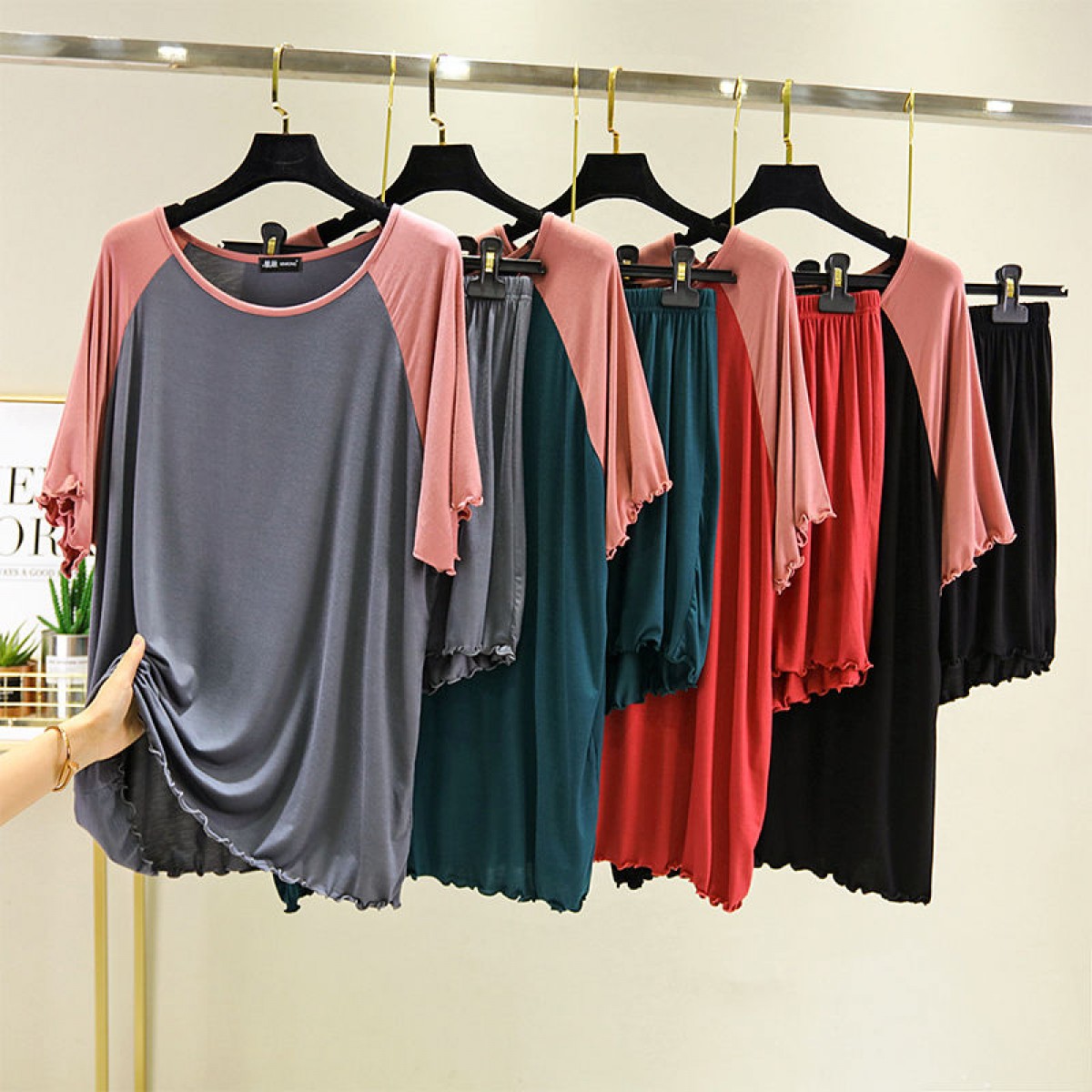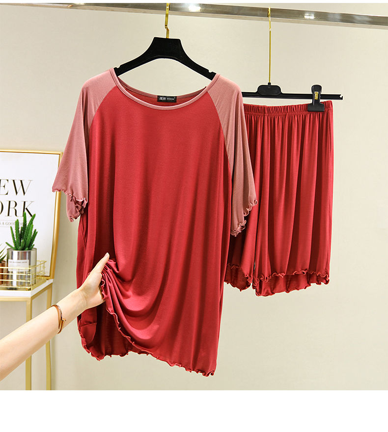 莫代爾T恤女夏季外穿打底衫短袖拼接薄款短褲睡衣兩件套裝家居服
