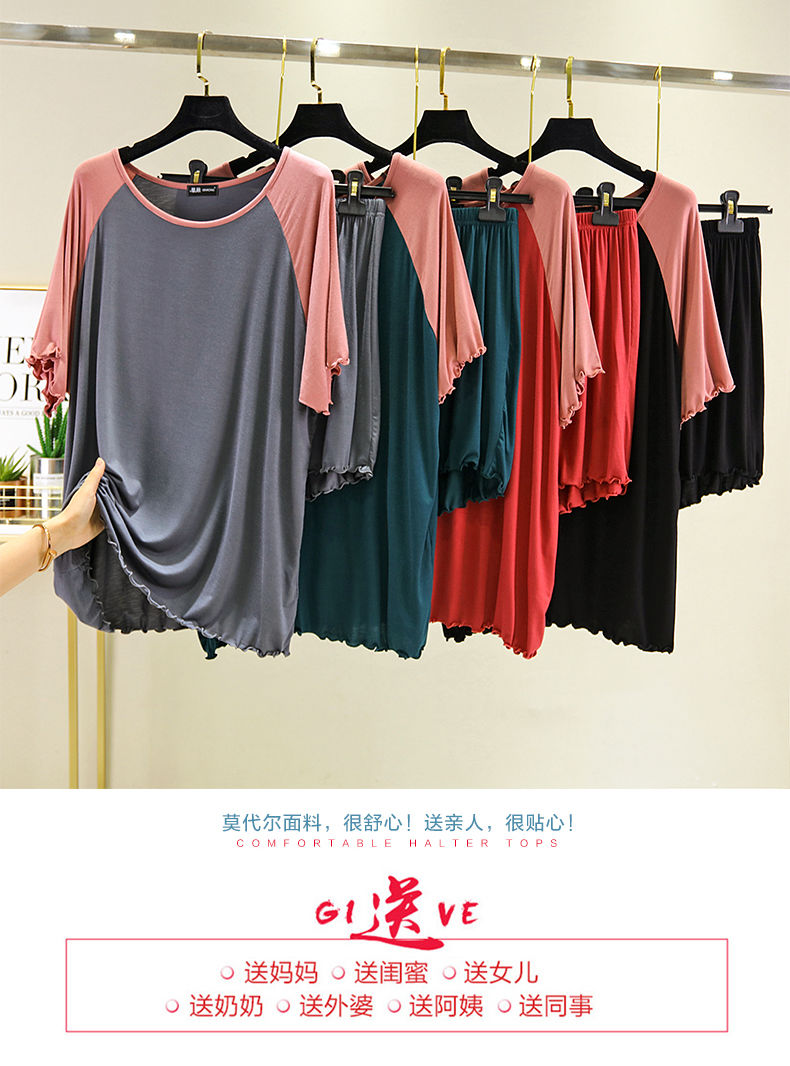 商品名稱:莫代爾T恤女夏季外穿打底衫短袖拼接薄款短褲睡衣兩件套裝家居服