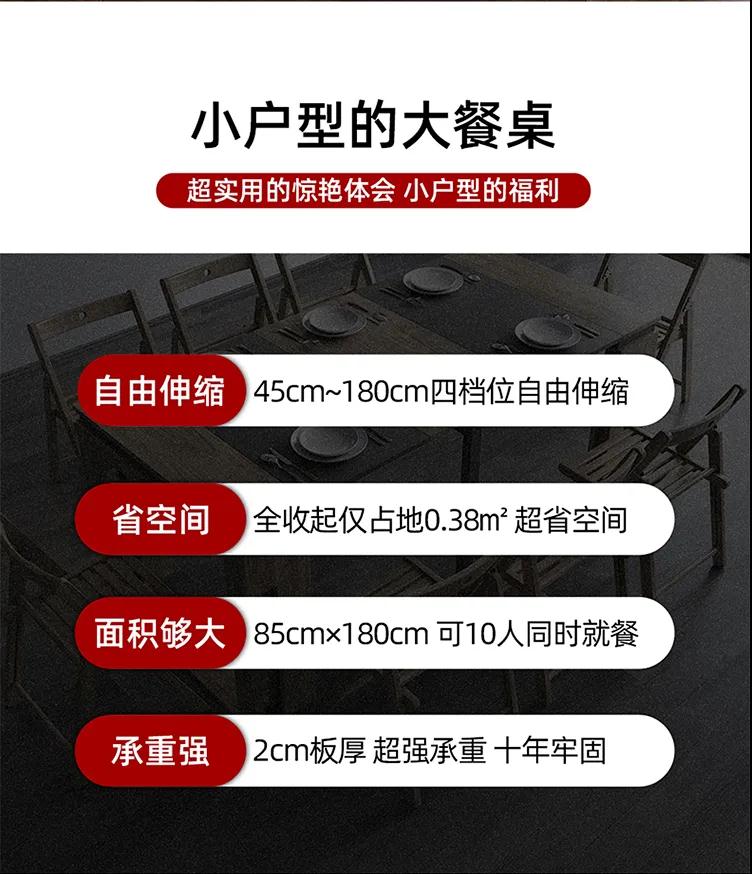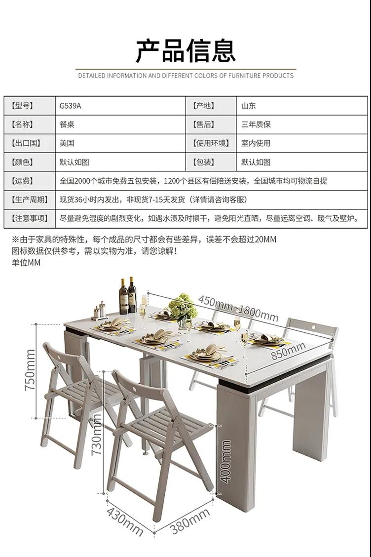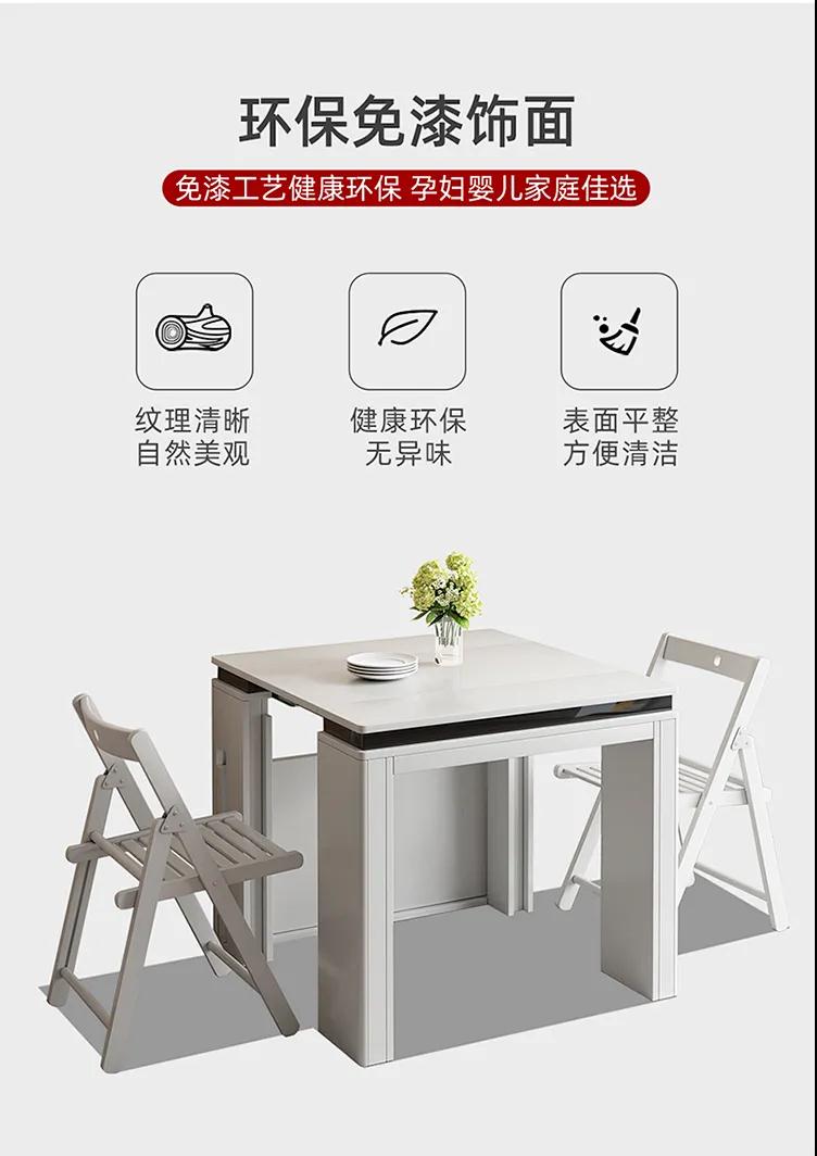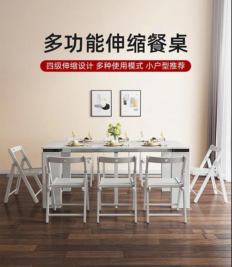 商品名稱:古宜可伸縮隱形折疊餐桌椅組合北歐簡約小戶型多功能飯桌實(shí)木餐椅