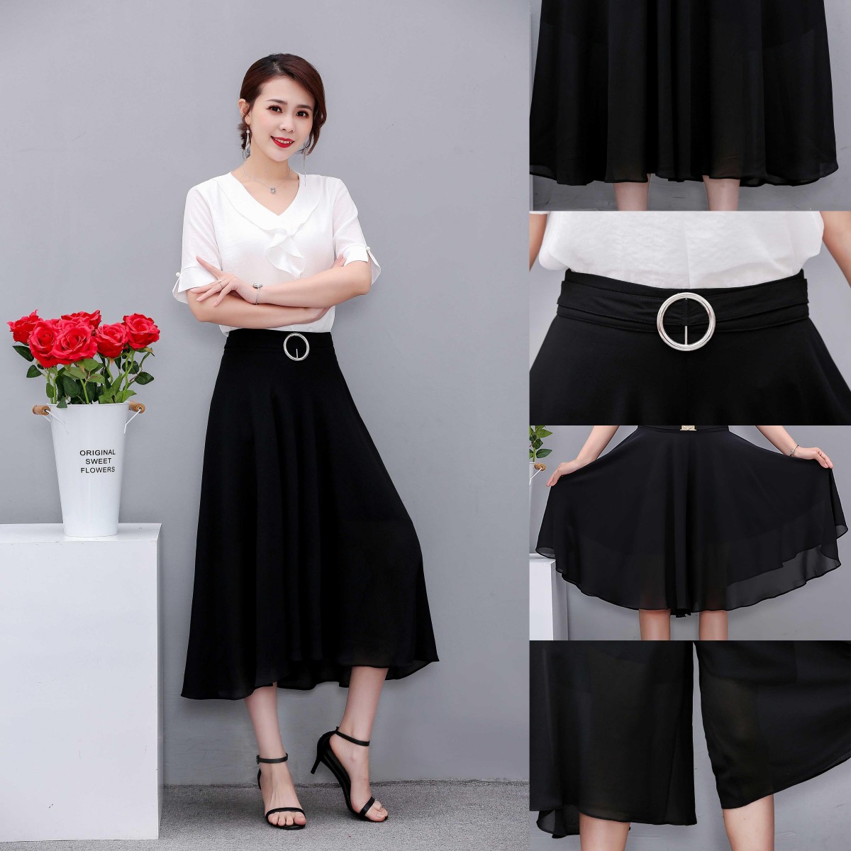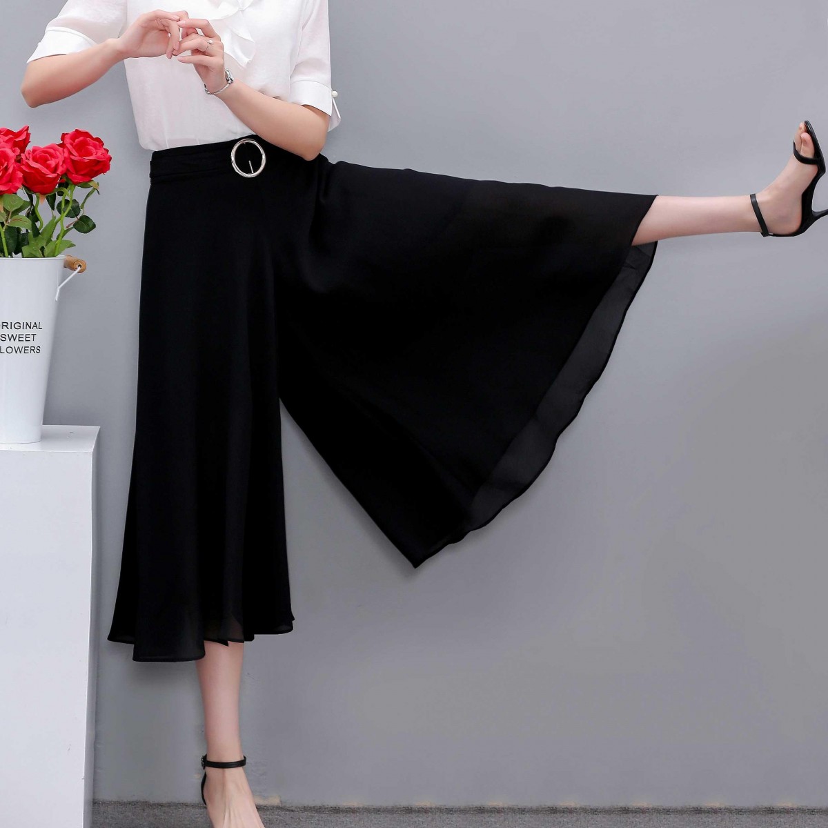 商品名稱:2020年夏季新款褲高腰九分褲闊腿褲薄款半身褲裙百搭大裙擺女雪紡