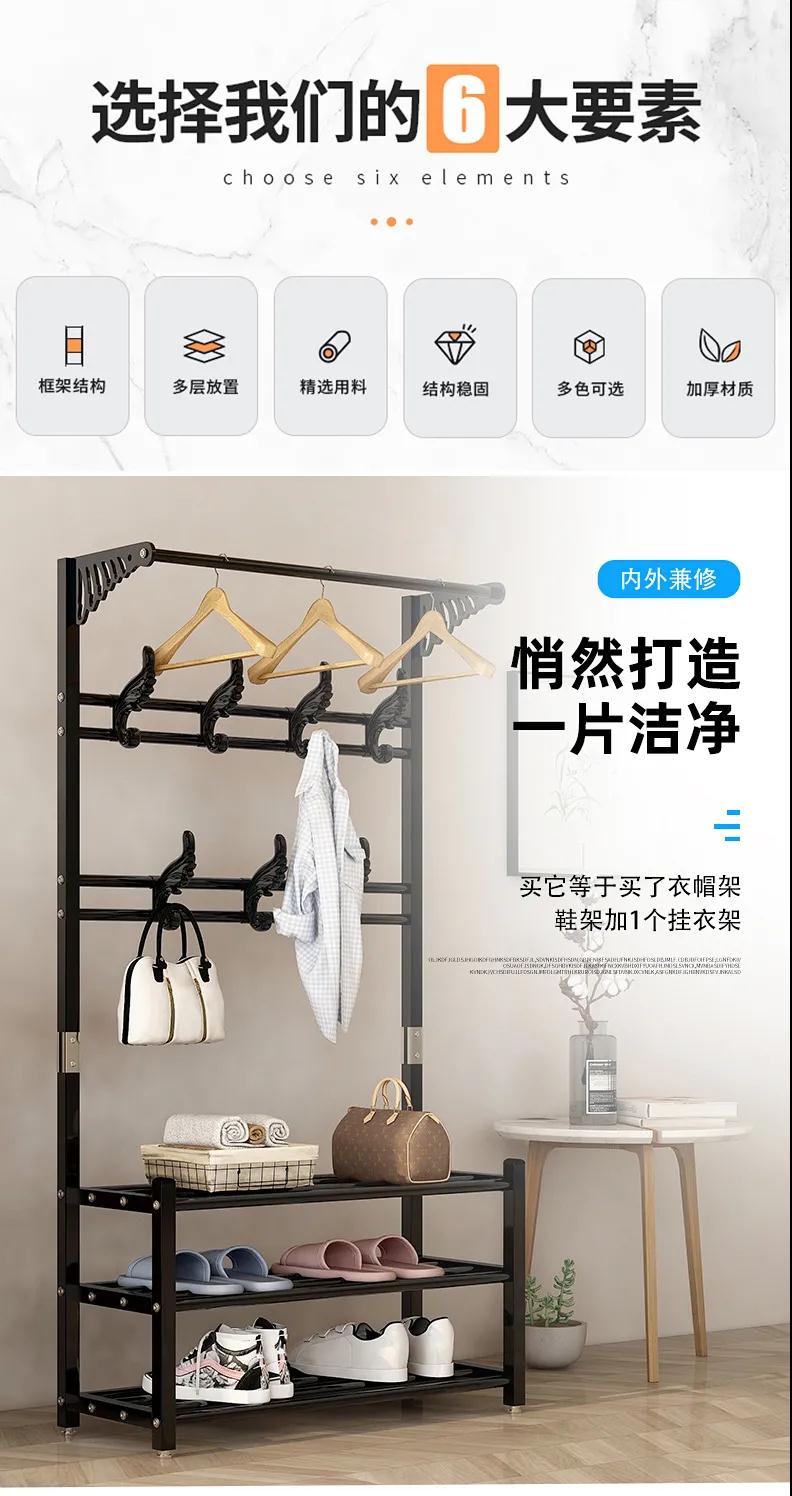 商品名稱:門廳衣帽架落地臥室家用掛衣架多功能衣架鞋架置物架組合簡(jiǎn)易客廳