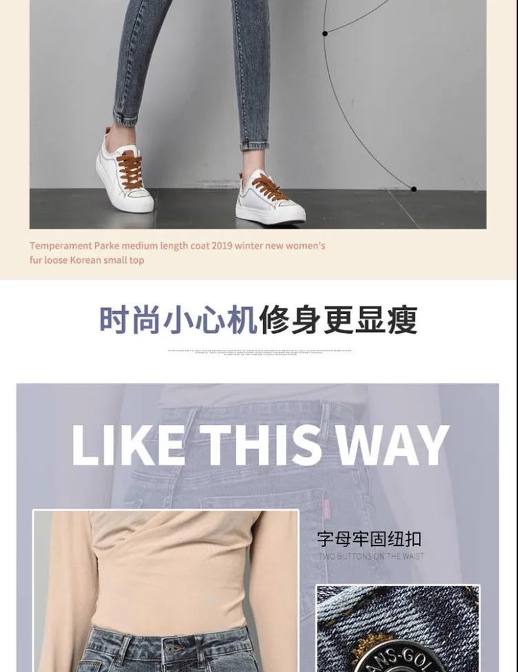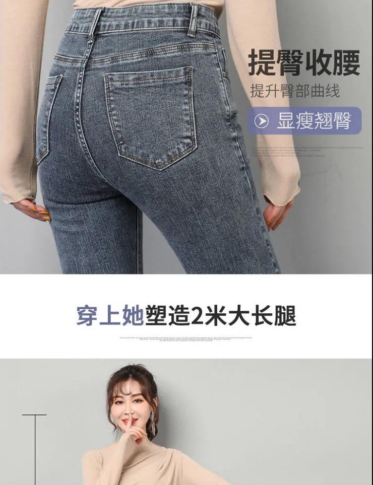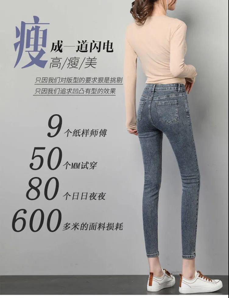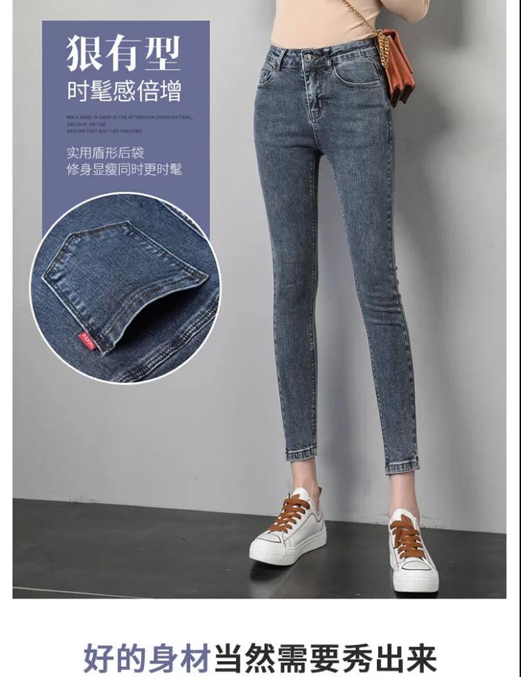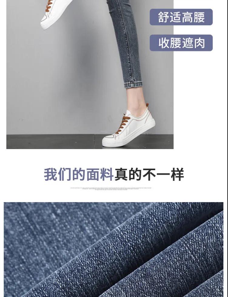 商品名稱:皮爾卡丹高腰牛仔褲女夏2020新款韓版顯瘦彈力小腳鉛筆長(zhǎng)褲子