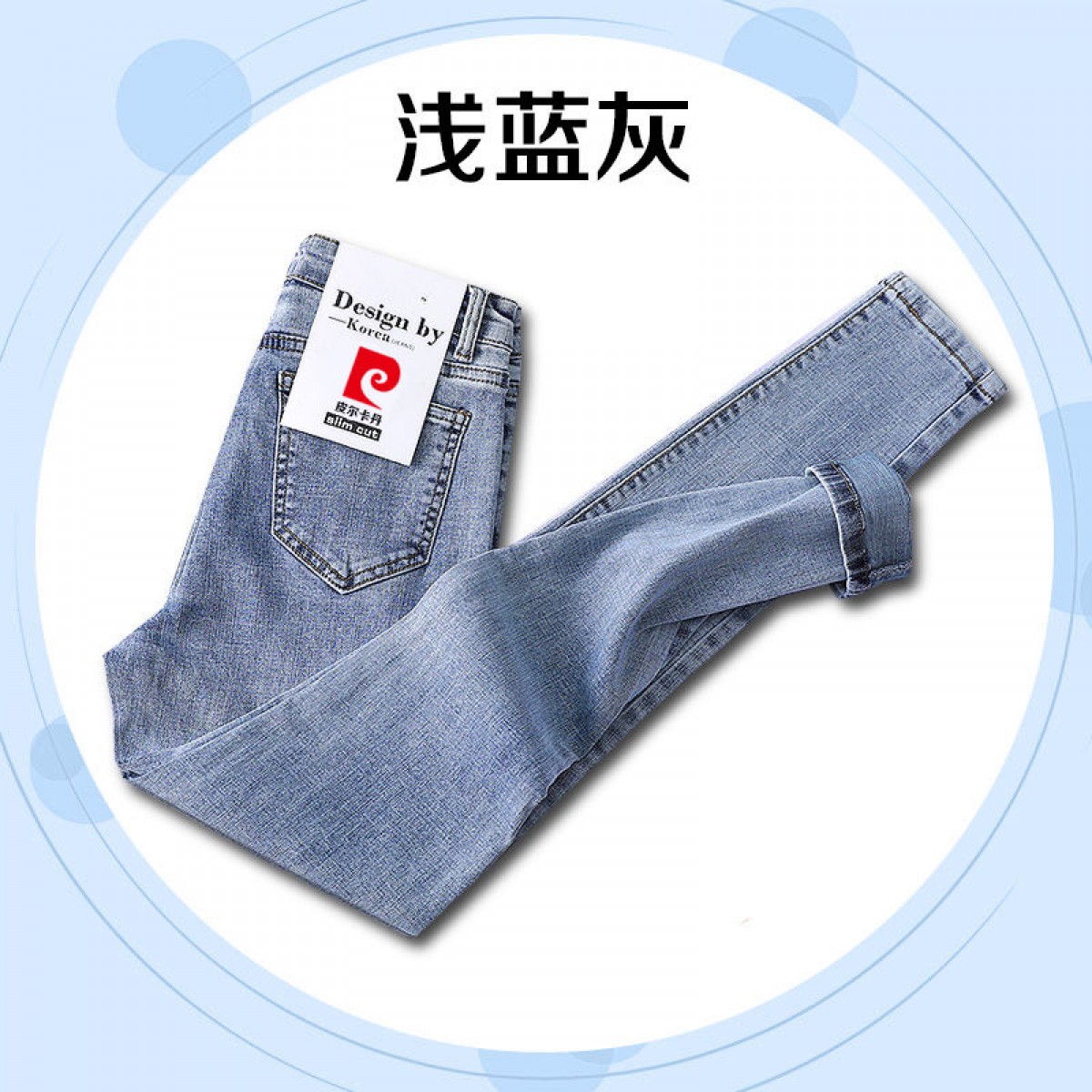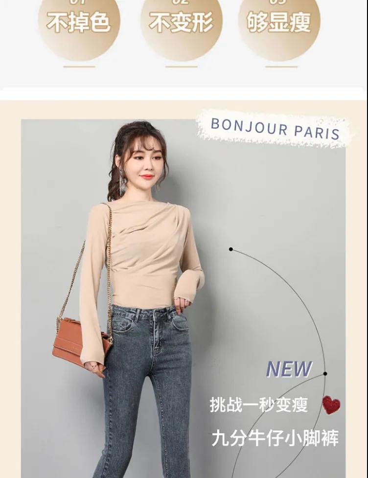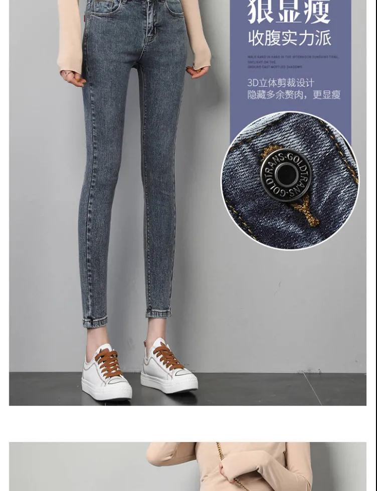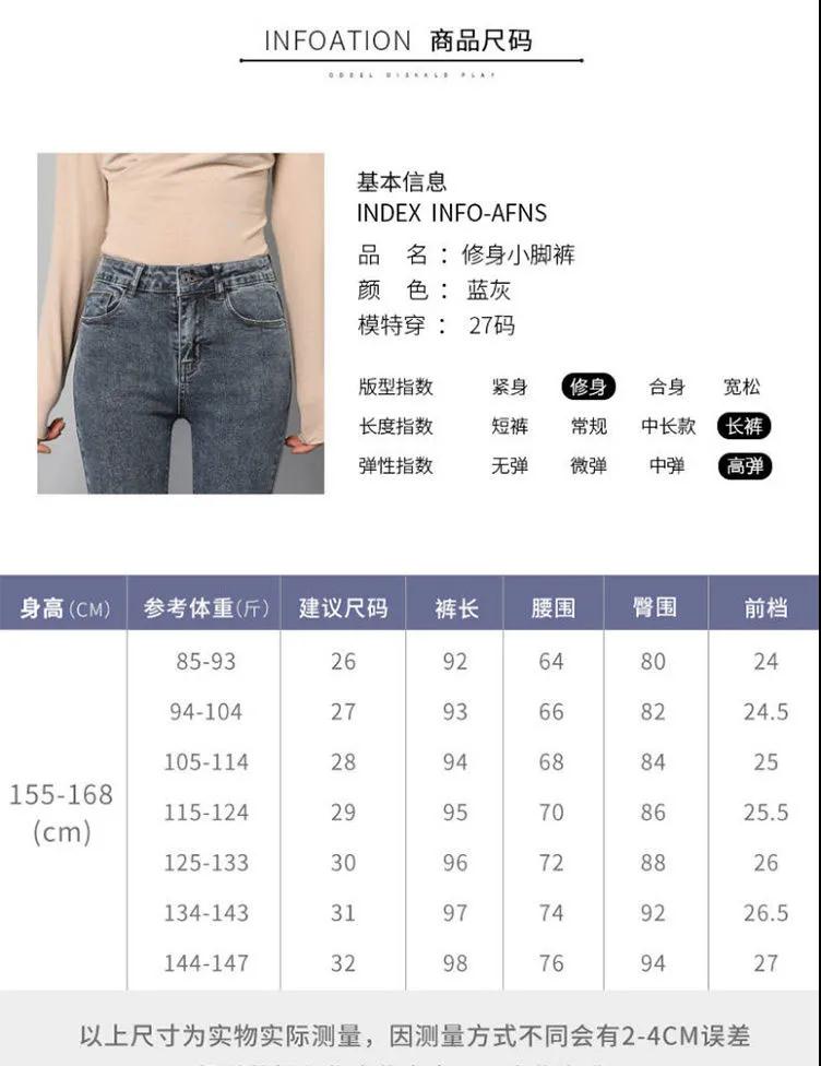 商品名稱:皮爾卡丹高腰牛仔褲女夏2020新款韓版顯瘦彈力小腳鉛筆長(zhǎng)褲子
