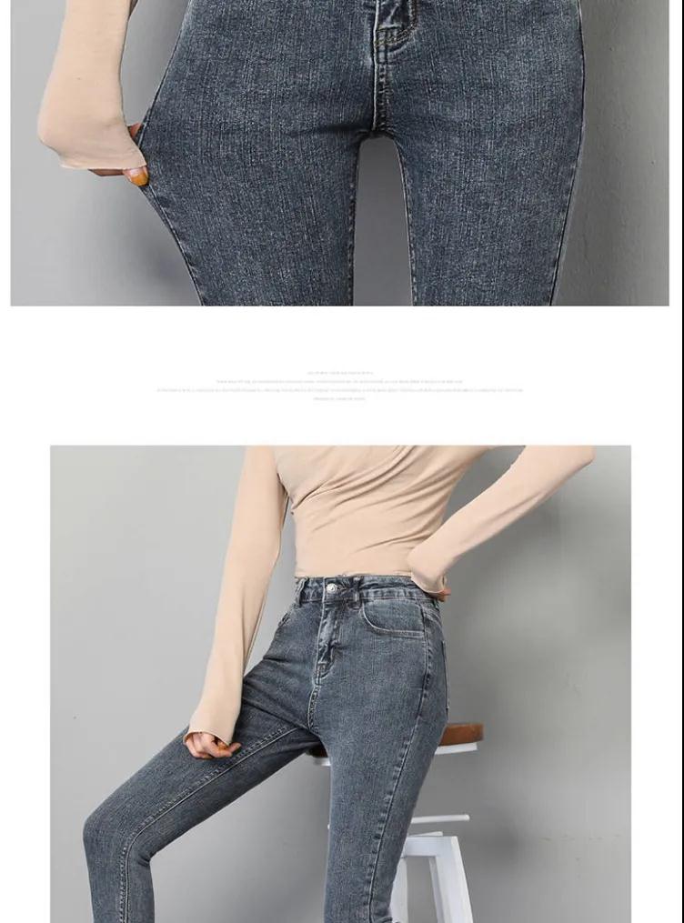 皮爾卡丹高腰牛仔褲女夏2020新款韓版顯瘦彈力小腳鉛筆長(zhǎng)褲子