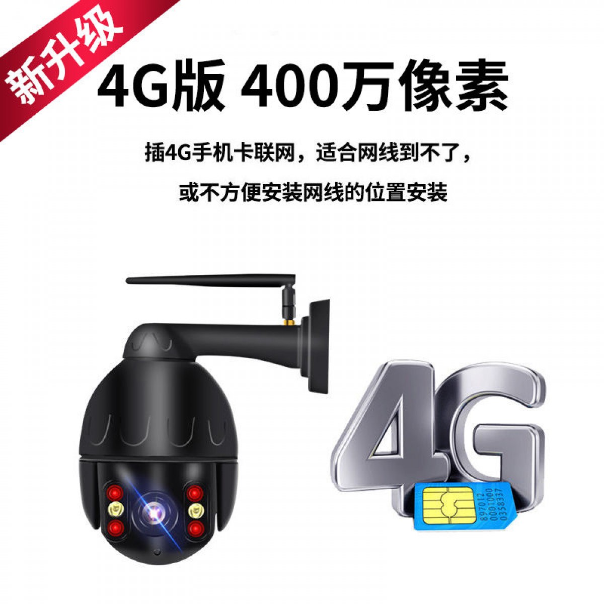 商品名稱:4G室外監(jiān)控攝像頭插手機(jī)卡無線無網(wǎng)流量遠(yuǎn)程家用超高清夜視360度