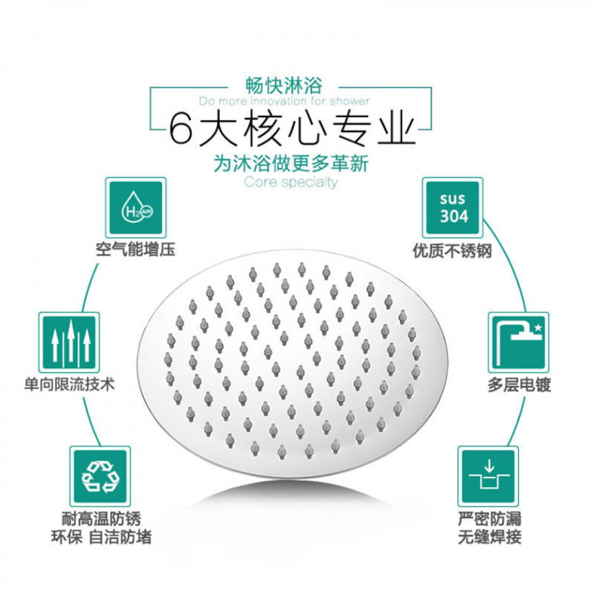 304不銹鋼淋浴花灑噴頭頂噴增壓浴室蓮蓬頭單頭淋浴頭家用