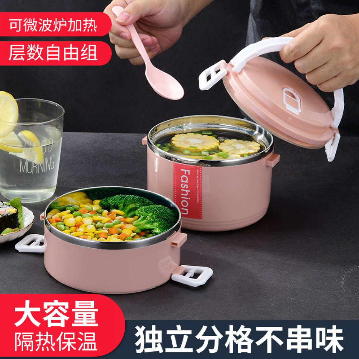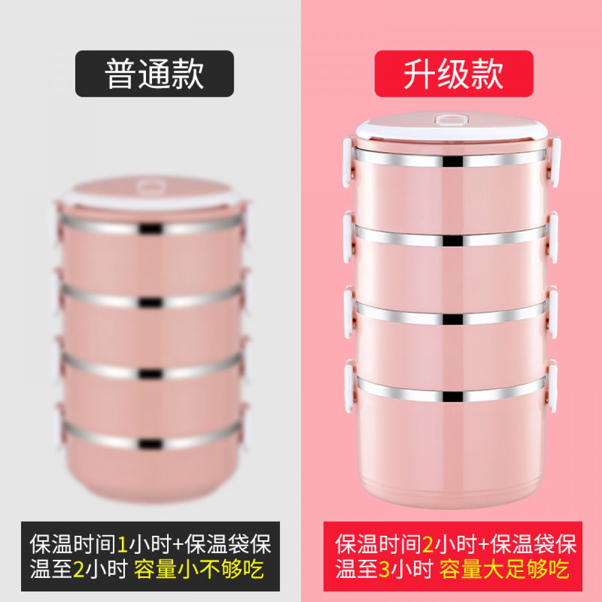 商品名稱:加高不銹鋼飯盒顯示成人上班族大容量多層便當保溫桶分格單層四層