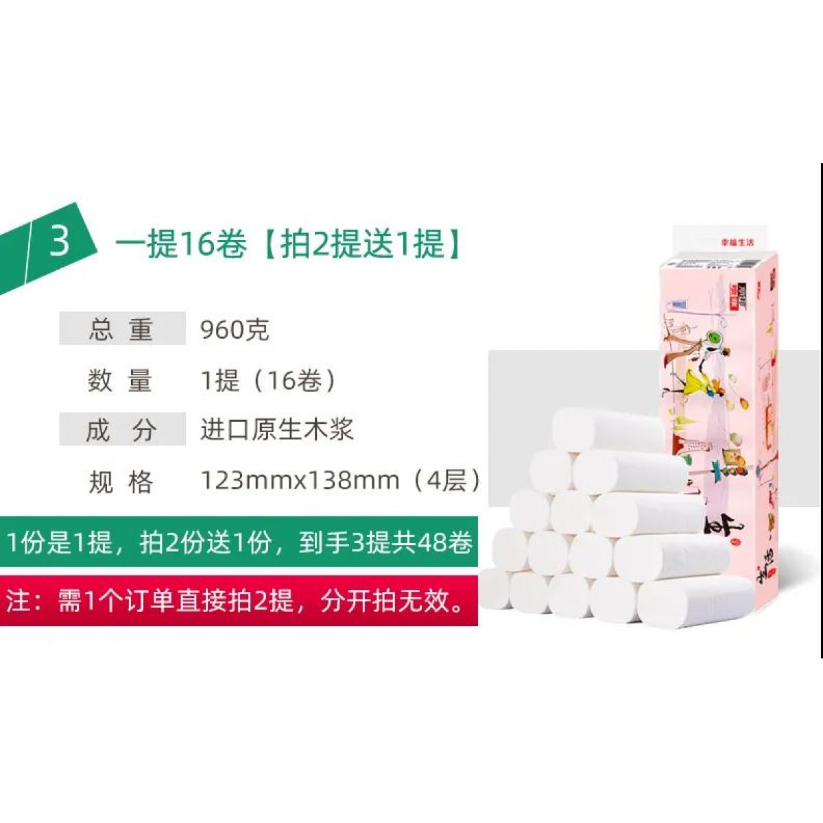 商品名稱:16卷麗邦衛(wèi)生紙批發(fā)家用卷紙巾木漿廁紙婦嬰紙手紙無芯卷筒【買2送1】