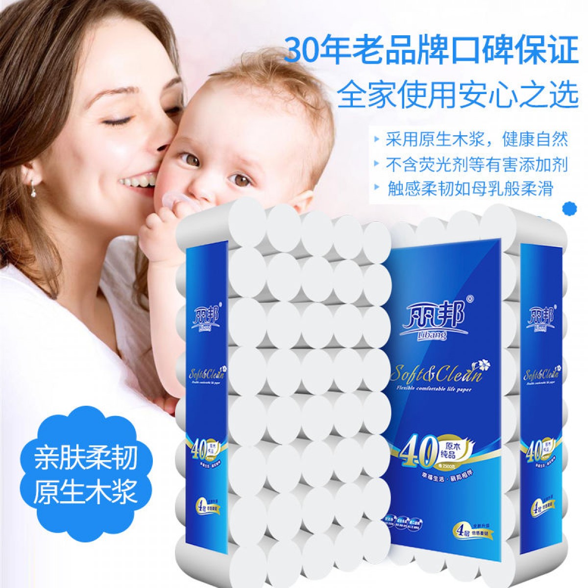 16卷麗邦衛(wèi)生紙批發(fā)家用卷紙巾木漿廁紙婦嬰紙手紙無芯卷筒【買2送1】