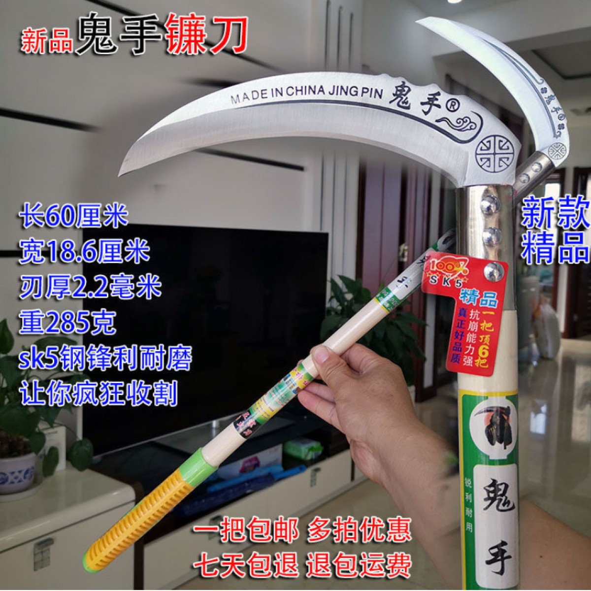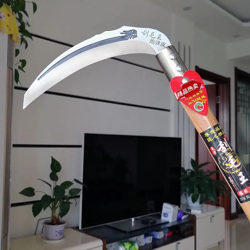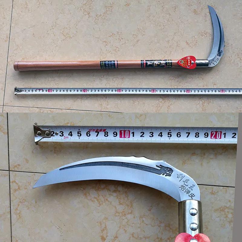 商品名稱:農(nóng)用割草鐮刀刮毛王收割玉米鐮刀旱田錳鋼長柄木把錳鋼鋒利免磨