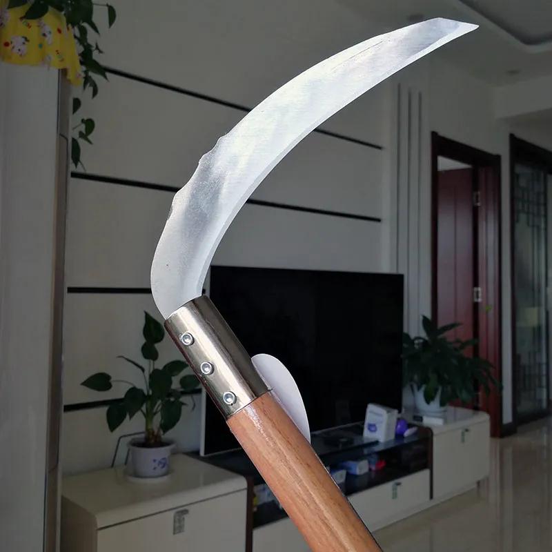 農(nóng)用割草鐮刀刮毛王收割玉米鐮刀旱田錳鋼長柄木把錳鋼鋒利免磨