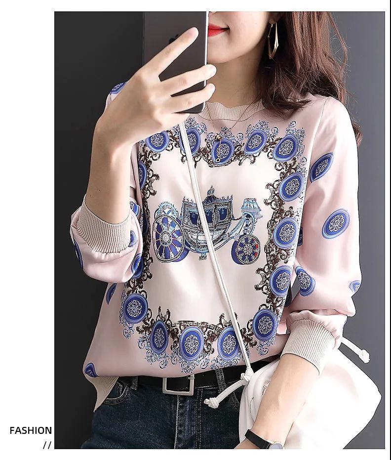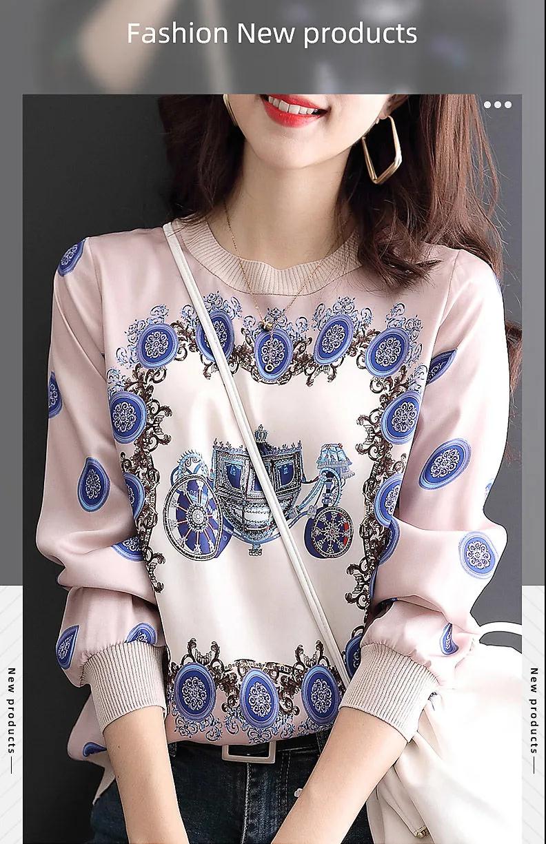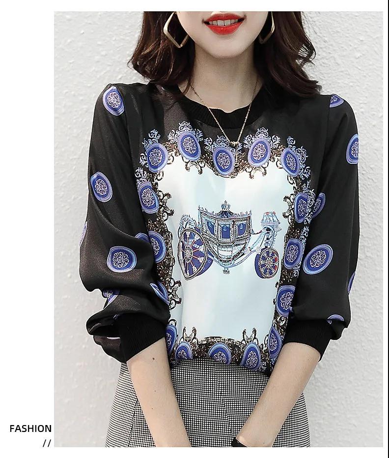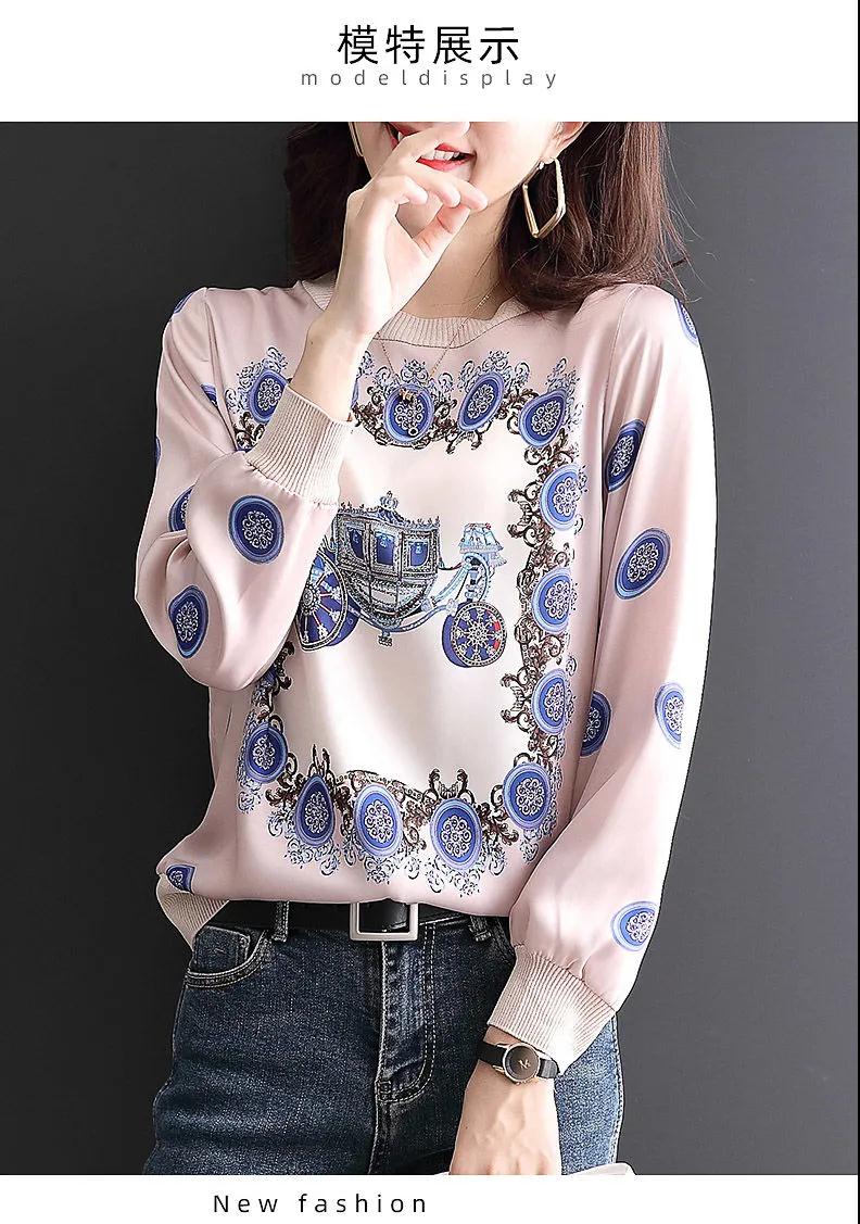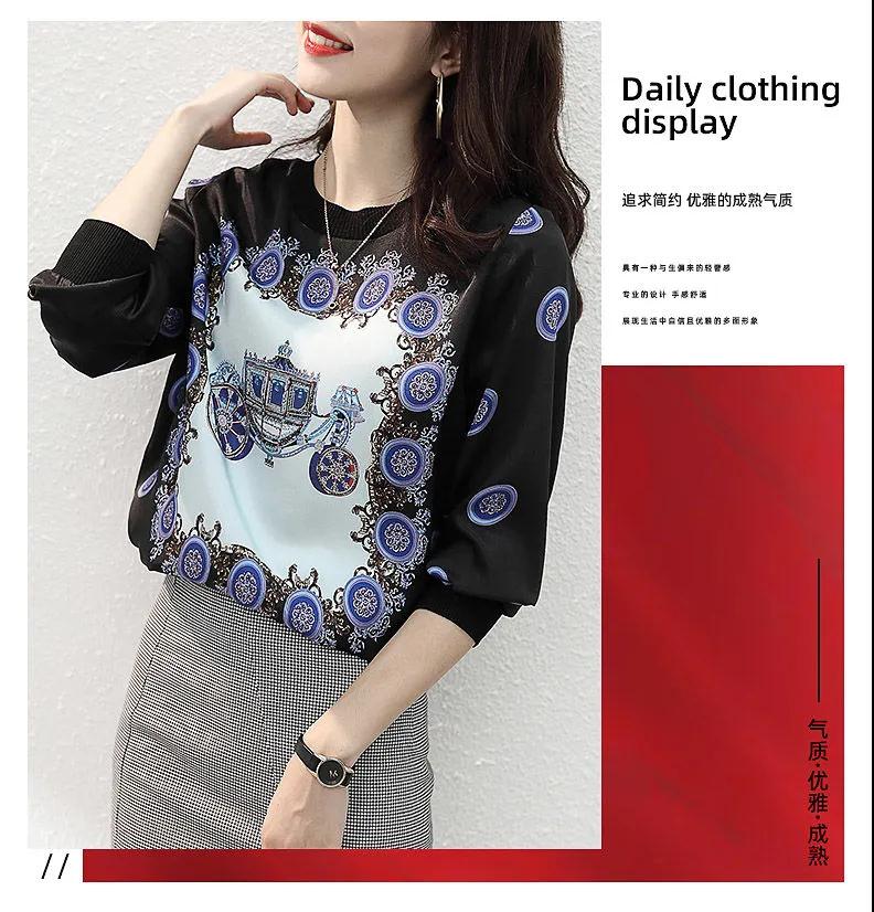 商品名稱:印花雪紡拼接T恤女2020秋裝新款寬松洋氣時尚薄款長袖上衣潮【15天內(nèi)發(fā)貨】