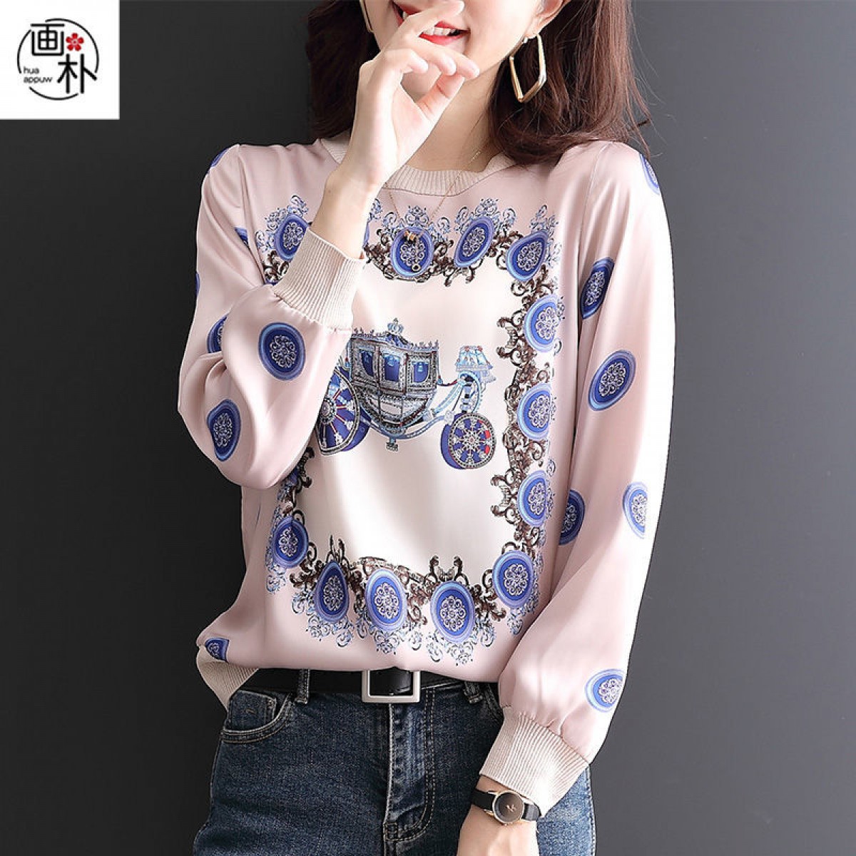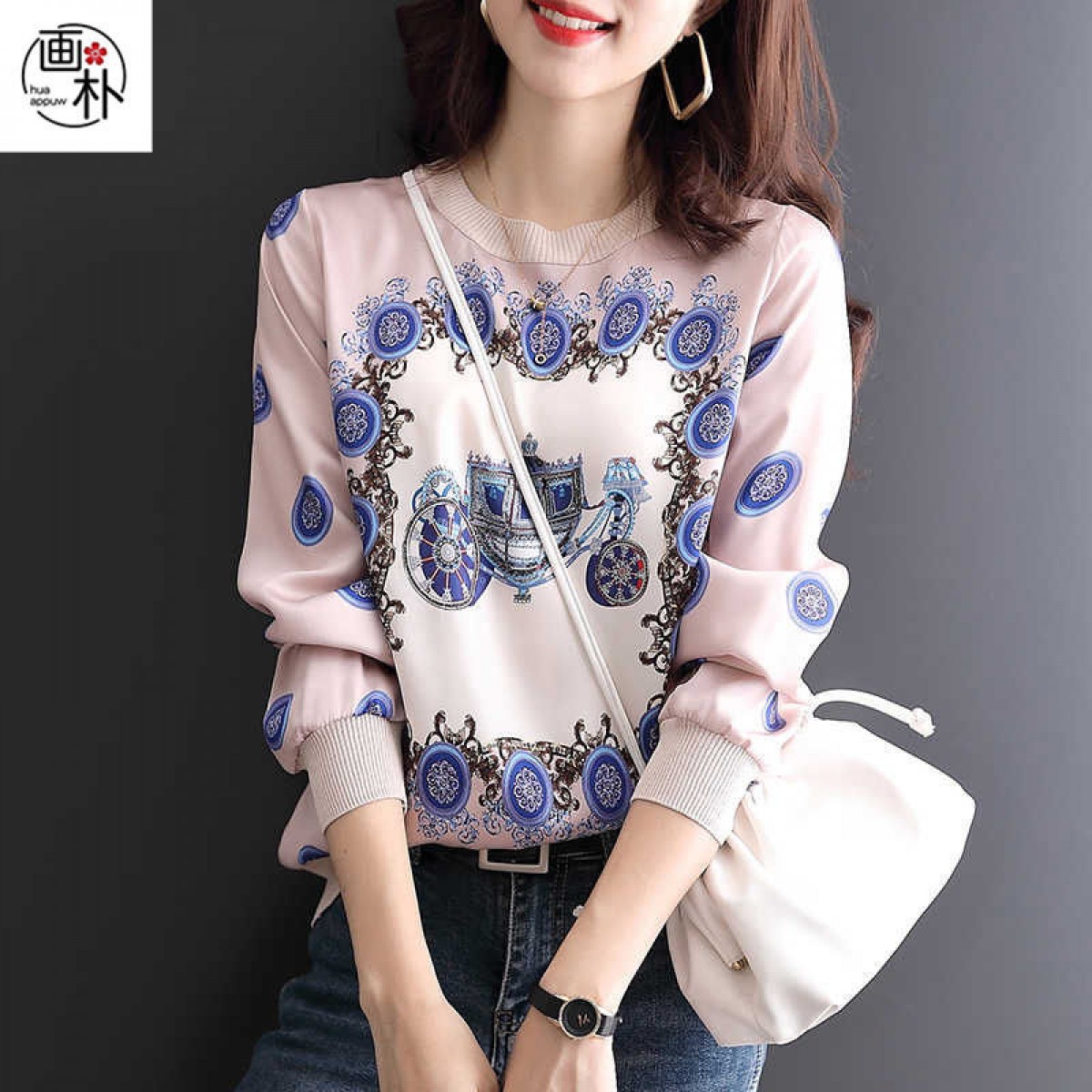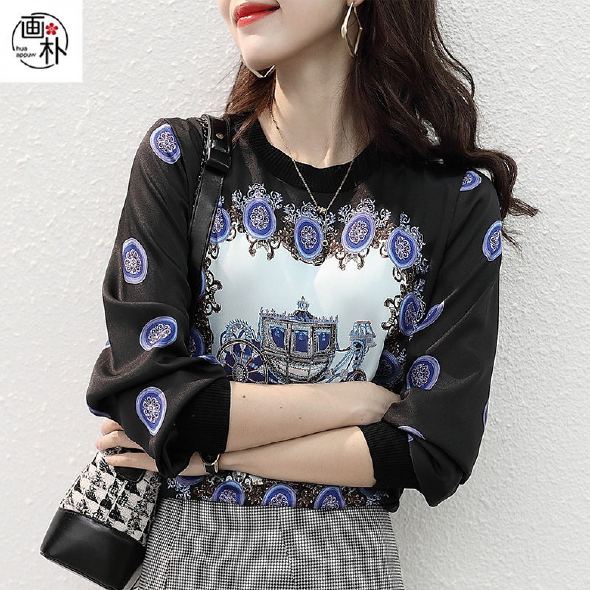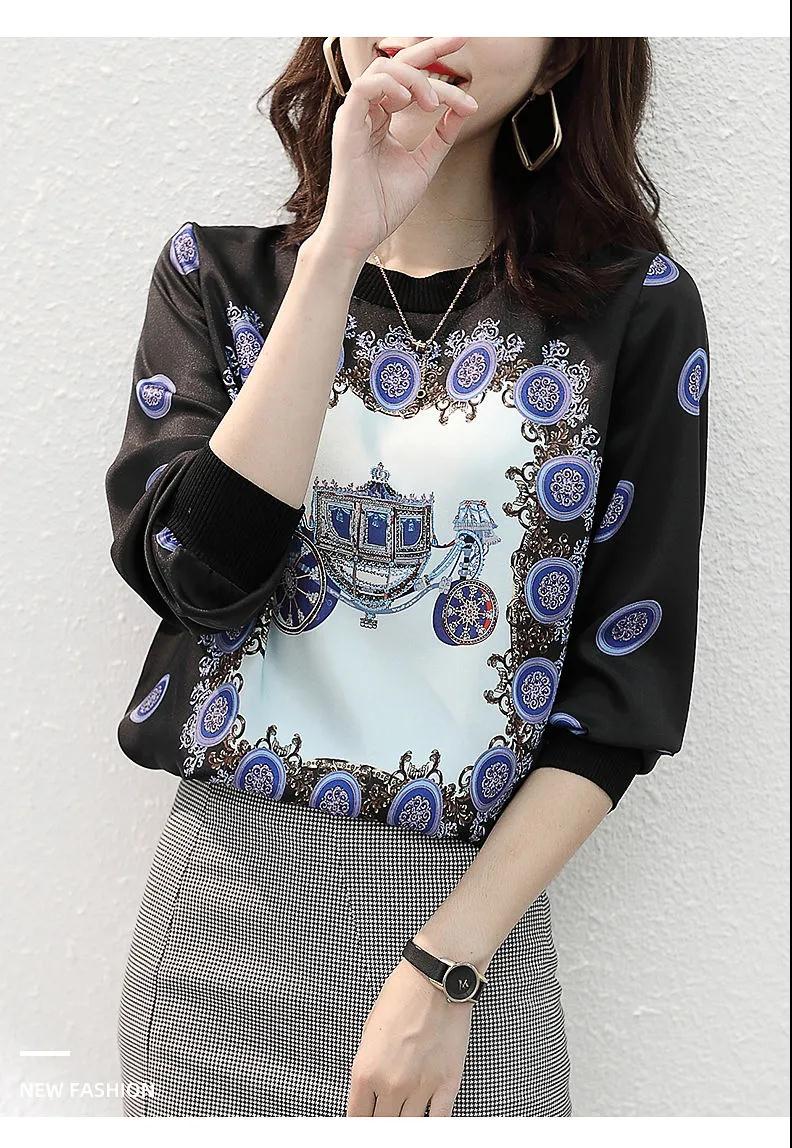 商品名稱:印花雪紡拼接T恤女2020秋裝新款寬松洋氣時尚薄款長袖上衣潮【15天內(nèi)發(fā)貨】