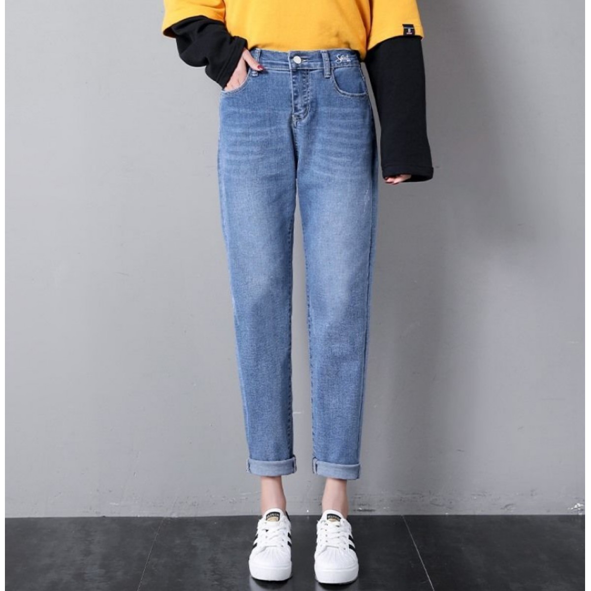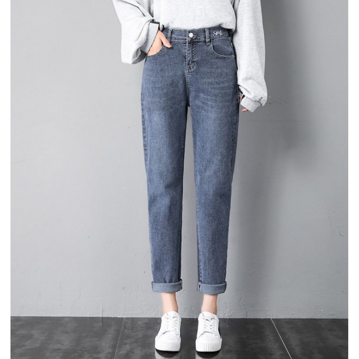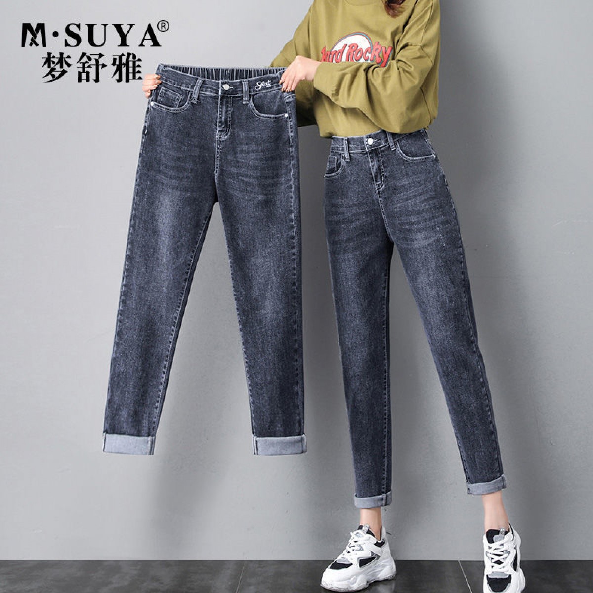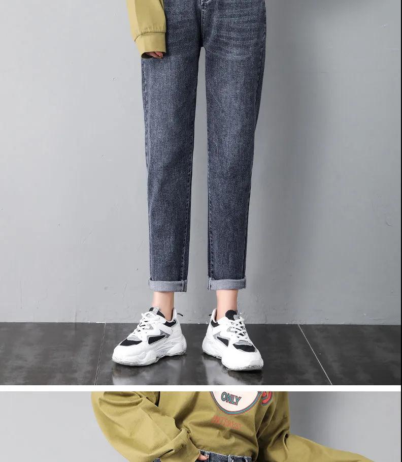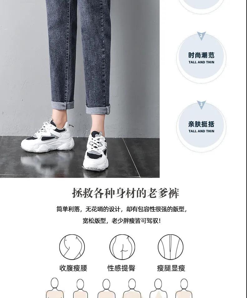 商品名稱:2020年新款秋季女褲顯瘦老爹褲高腰蘿卜哈倫牛仔褲寬松女褲