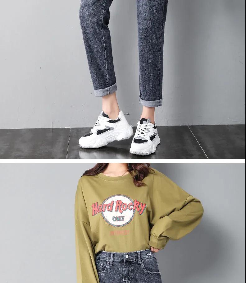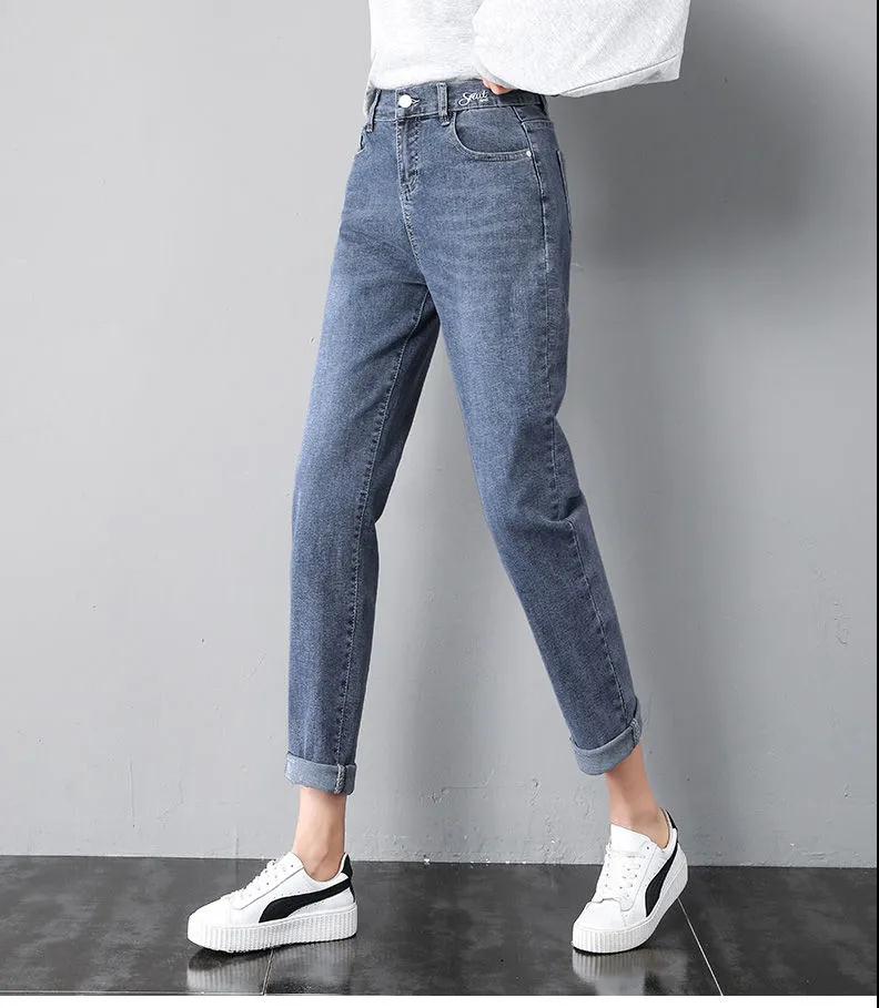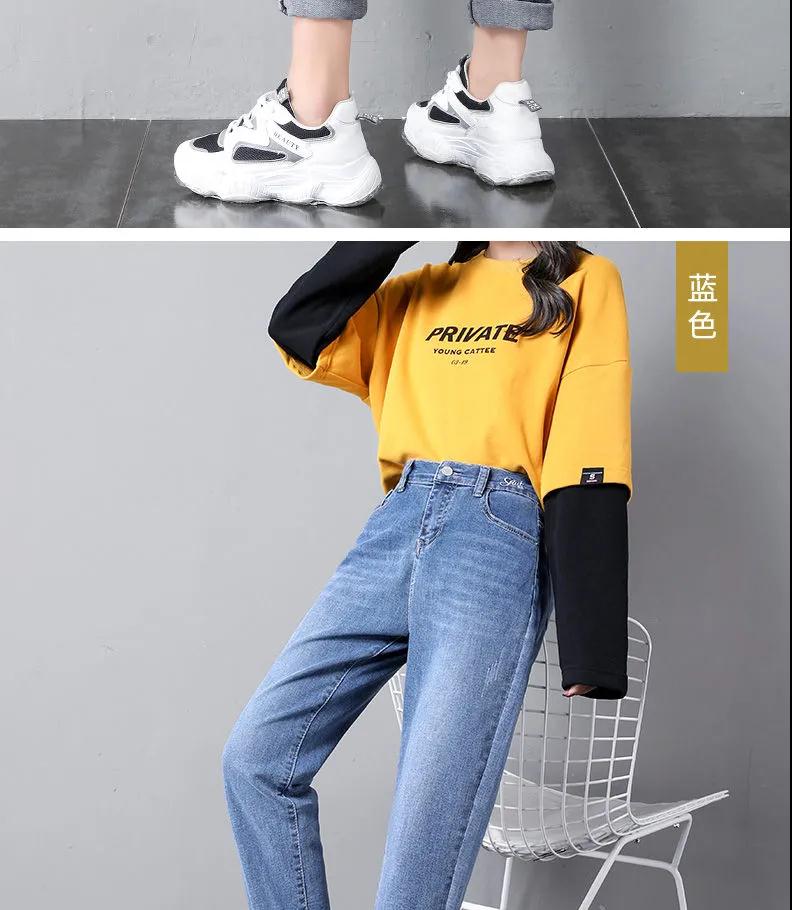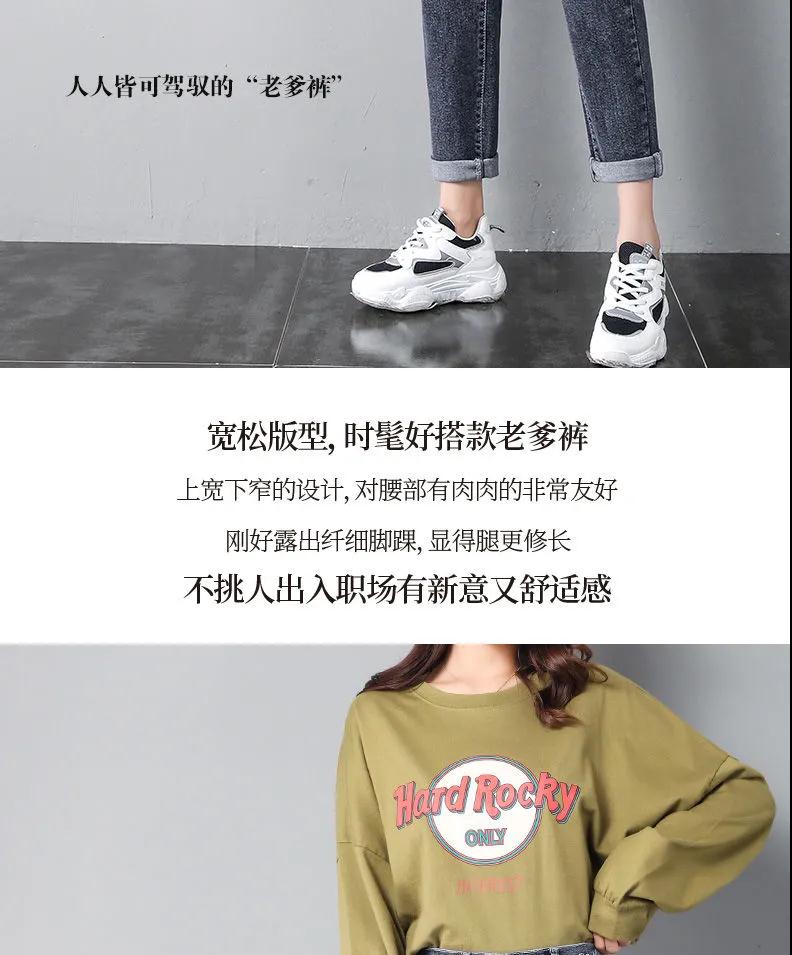 2020年新款秋季女褲顯瘦老爹褲高腰蘿卜哈倫牛仔褲寬松女褲