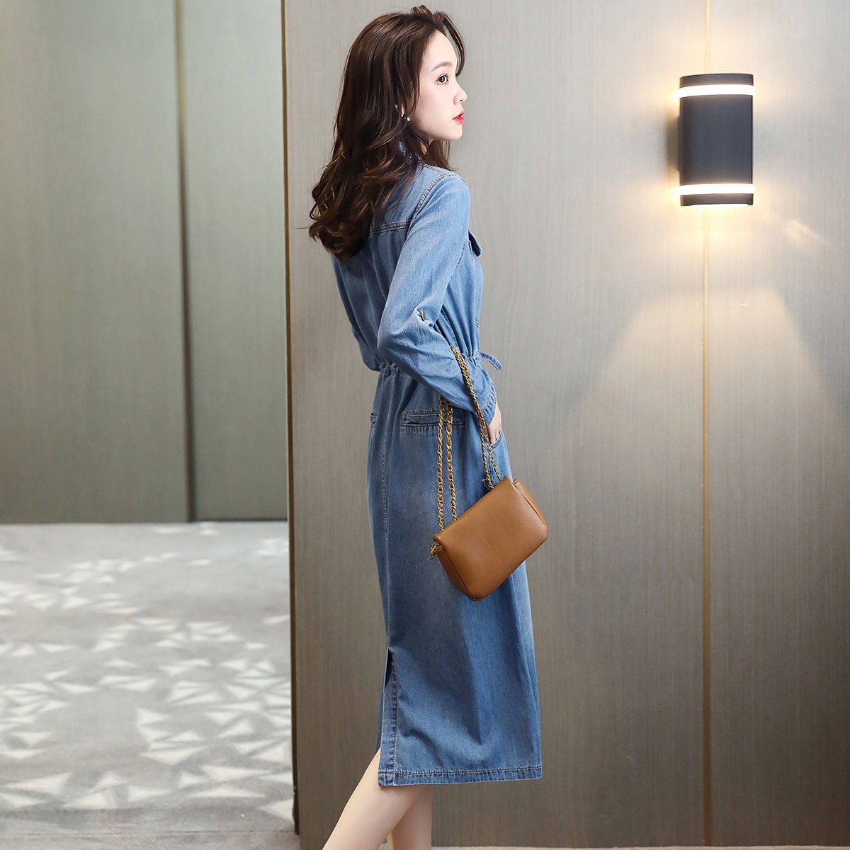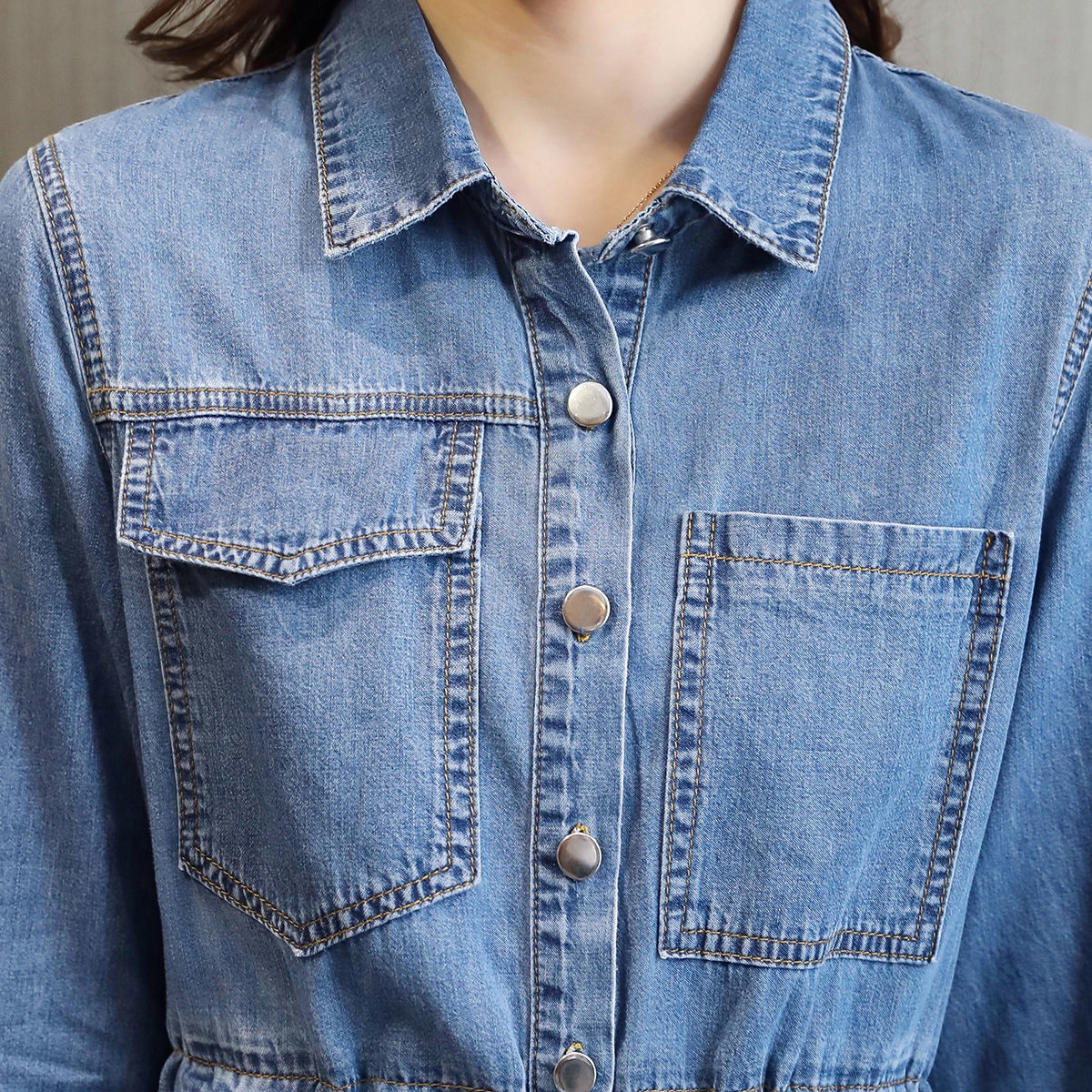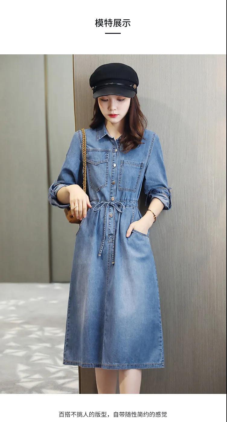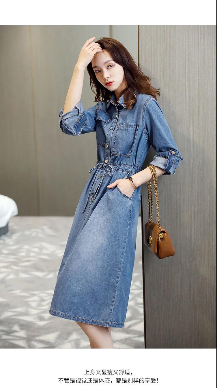 商品名稱:牛仔裙連衣裙2020秋季新款休閑口袋牛仔收腰短袖連衣裙女