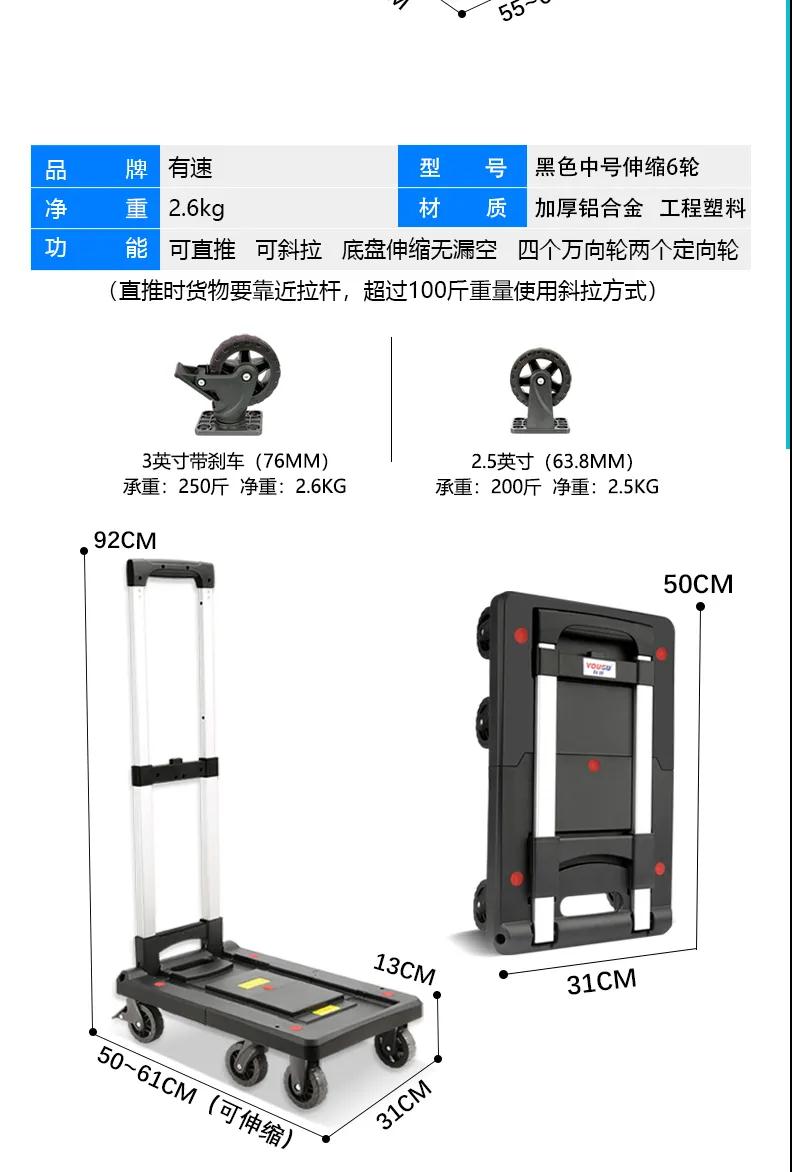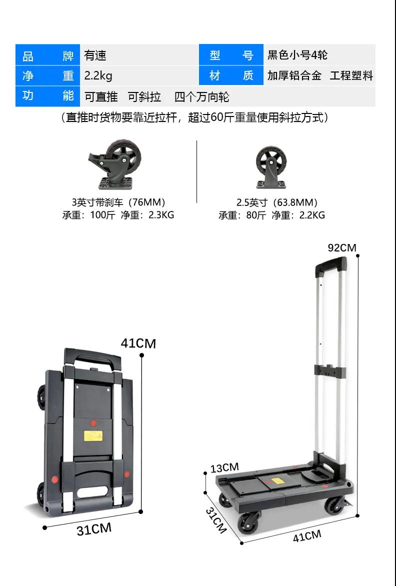 商品名稱:手拉車?yán)瓧U車家用小拖車折疊便攜小推車?yán)浭滞栖囏洶徇\(yùn)車行李車