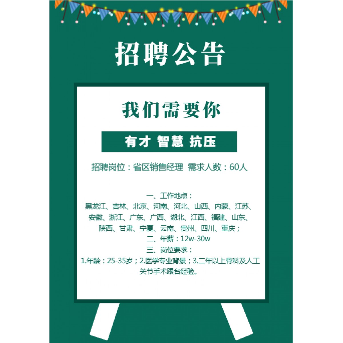 招聘崗位:省區(qū)銷售經(jīng)理 需求人數(shù):60人